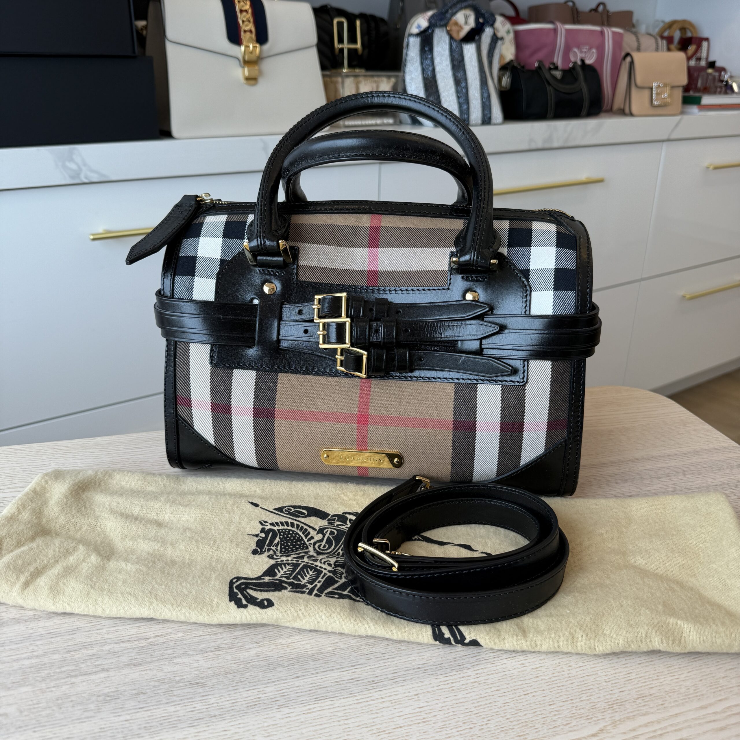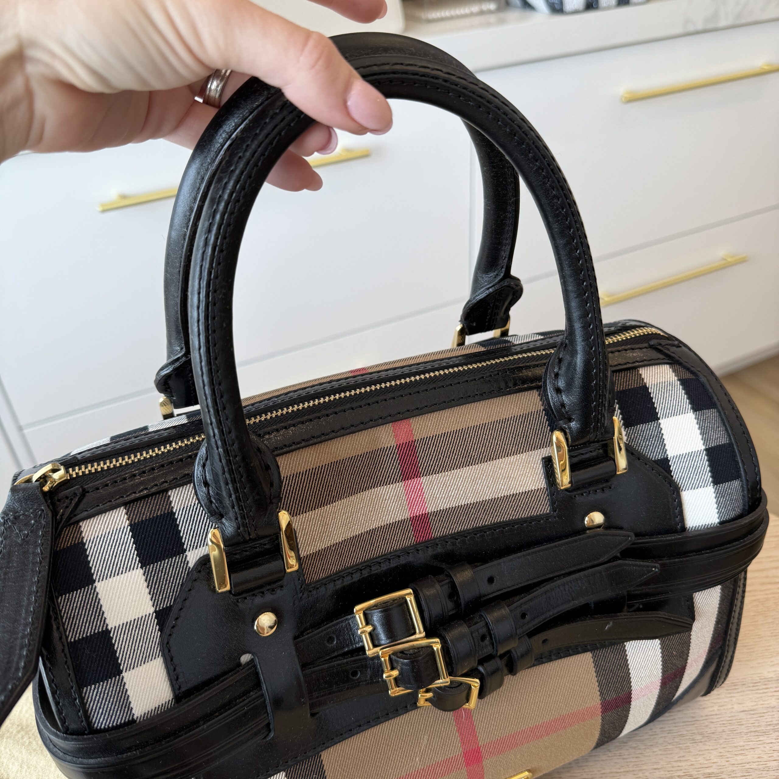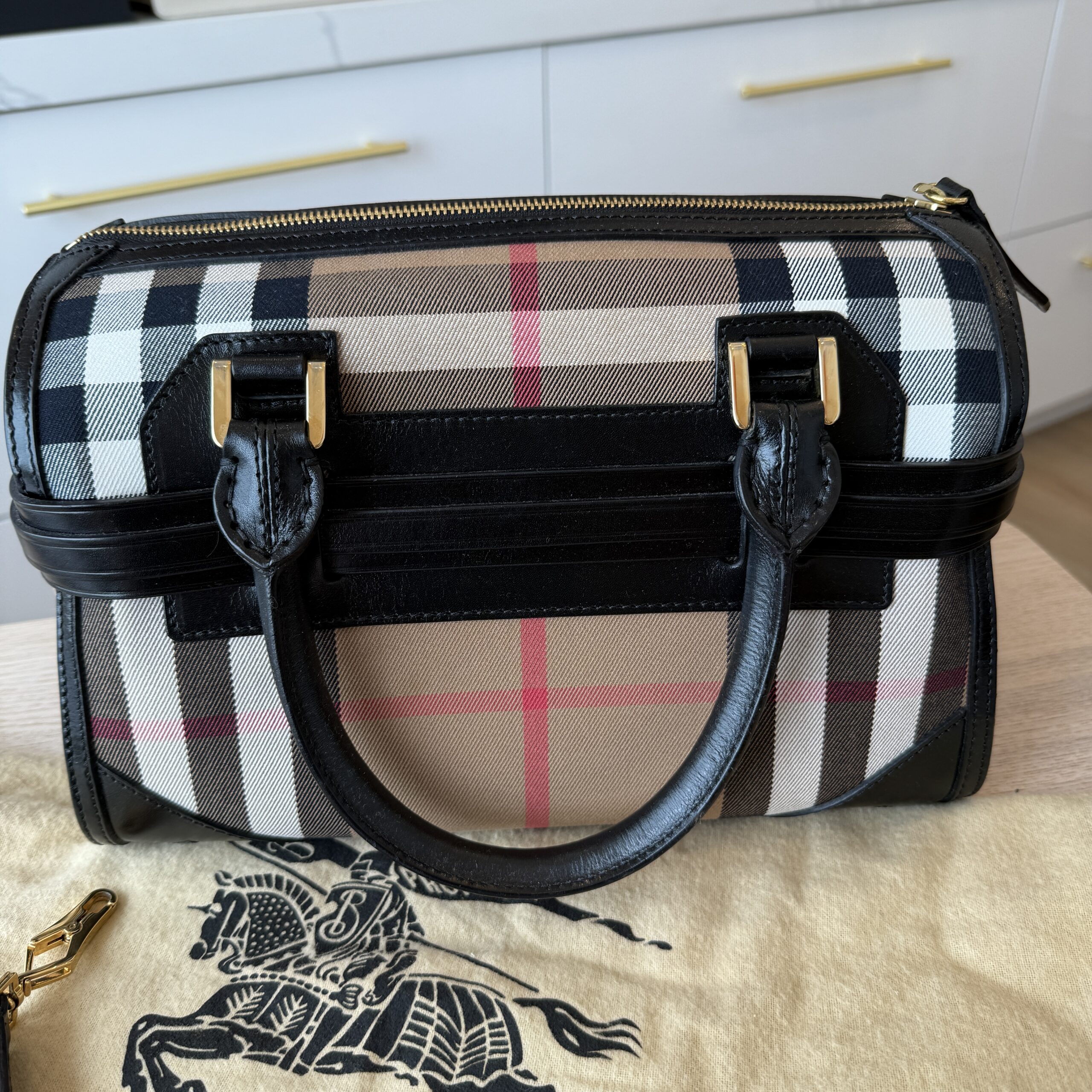 rdcdn Burberry House Check Bridle Calfskin Medium Alchester Bowling Bag Black