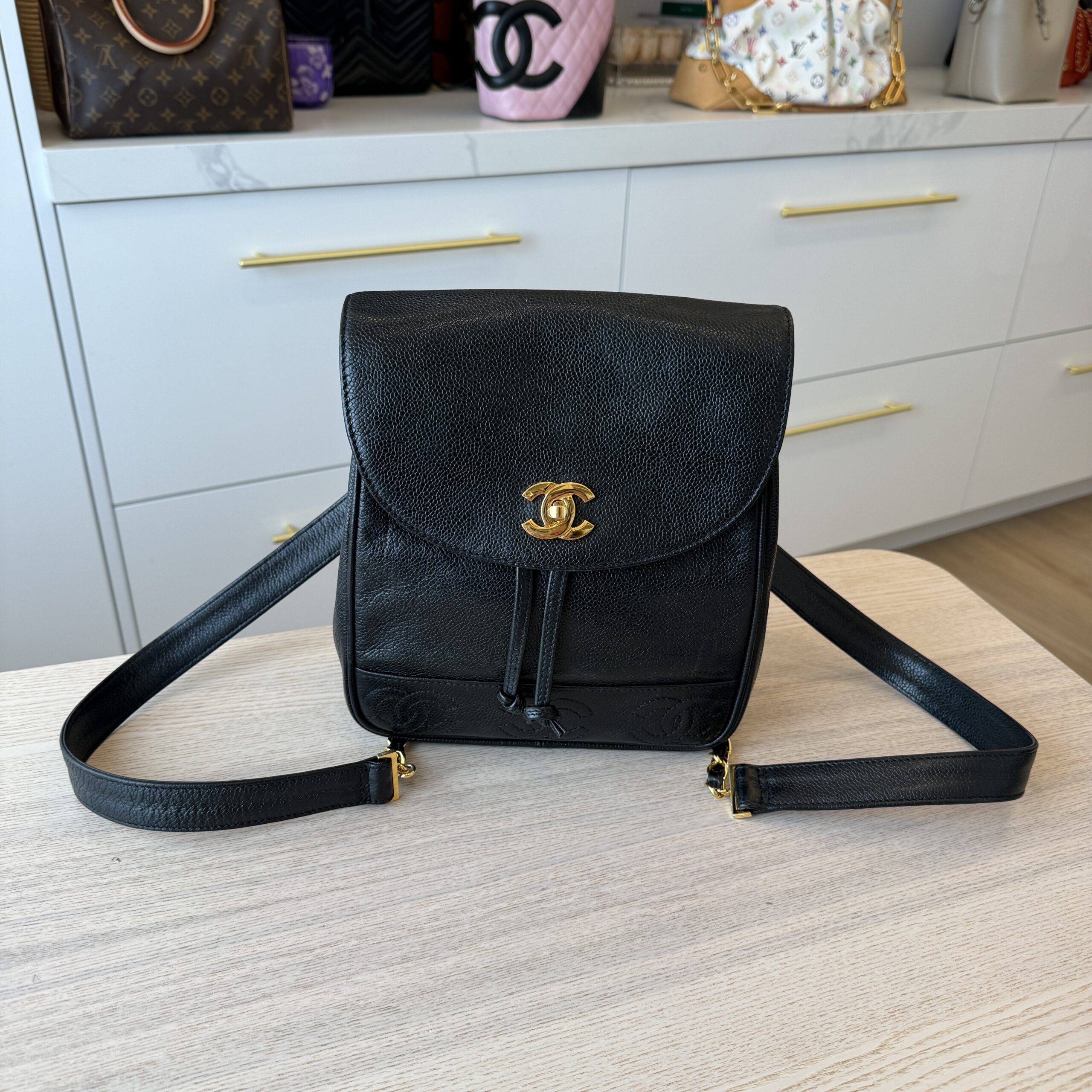Chanel 24K Triple CC Backpack Black Gold Hardware