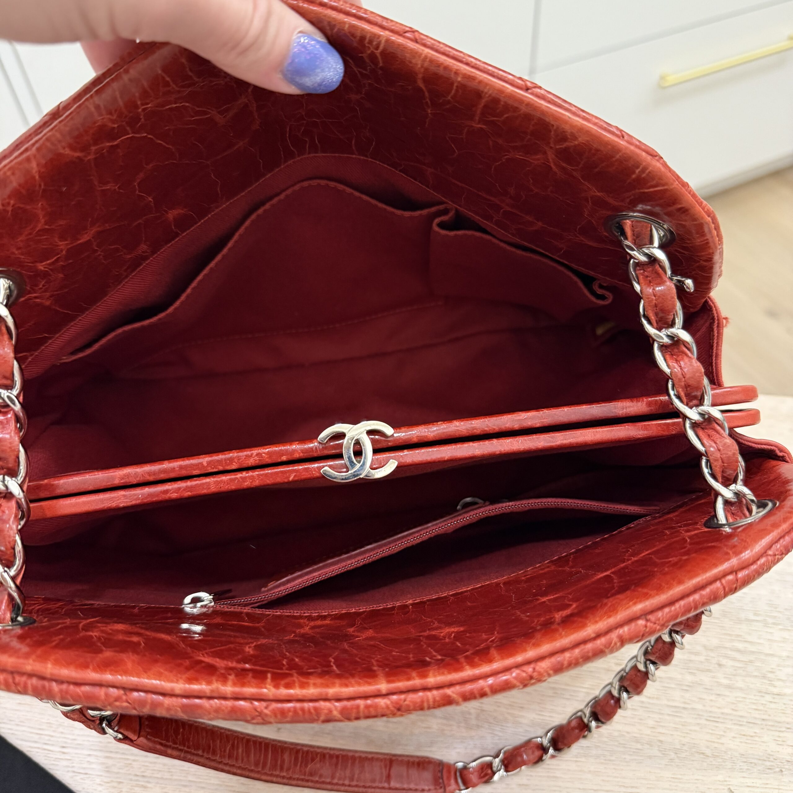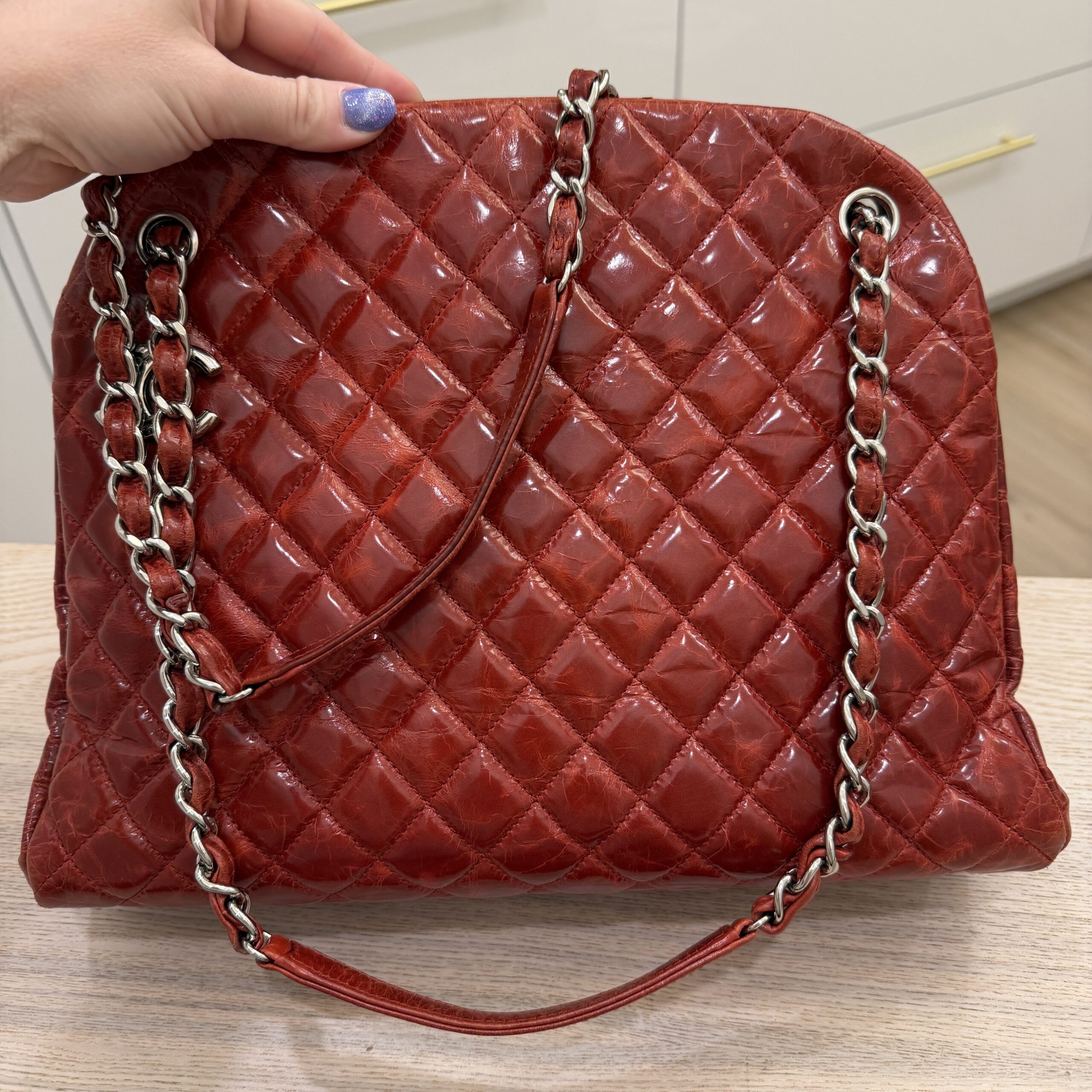 Chanel Glazed Calfskin Quilted Large Just Mademoiselle Bowling Bag Red