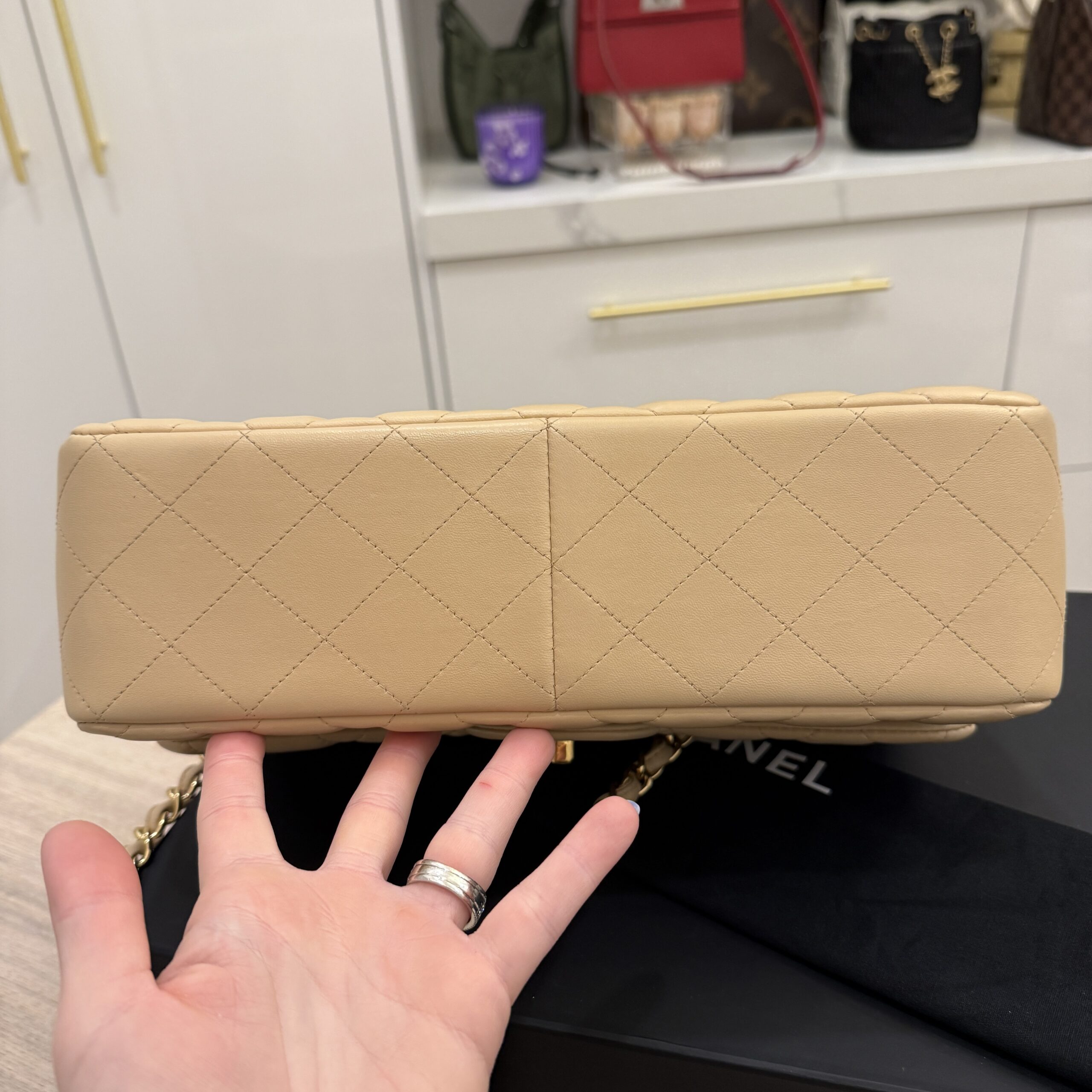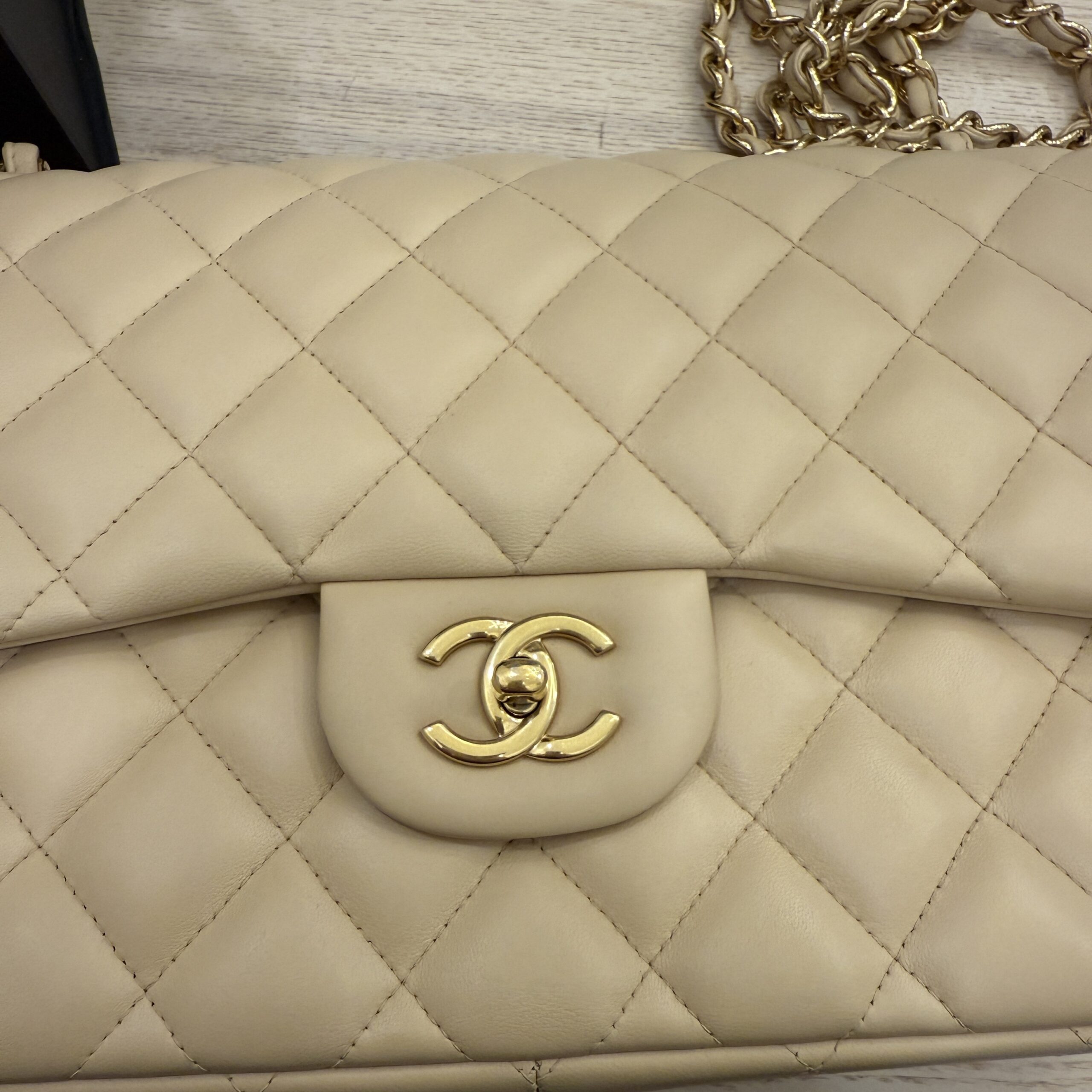Chanel Lambskin Quilted Jumbo Double Flap Beige Claire Gold Hardware