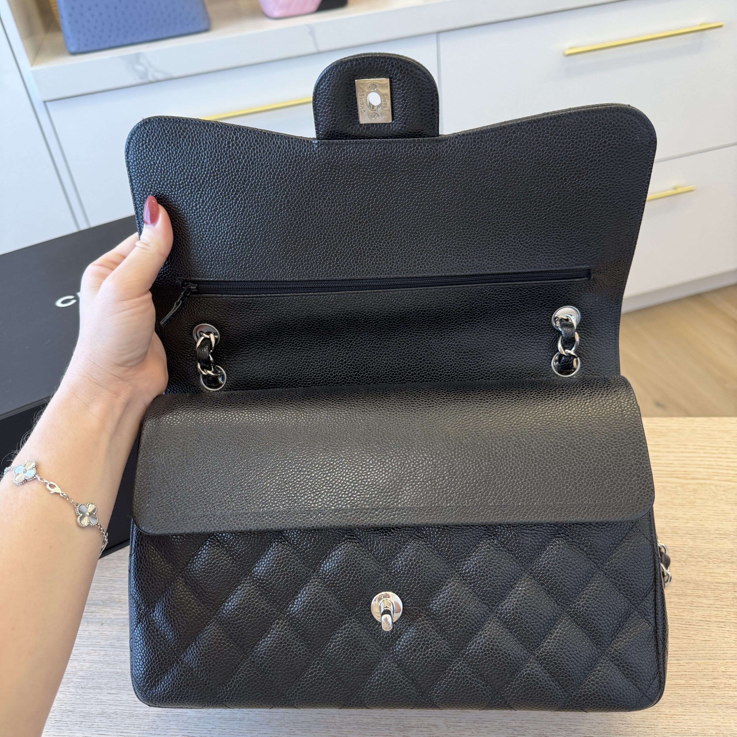 Chanel Caviar Quilted Jumbo Double Flap Black Silver Hardware