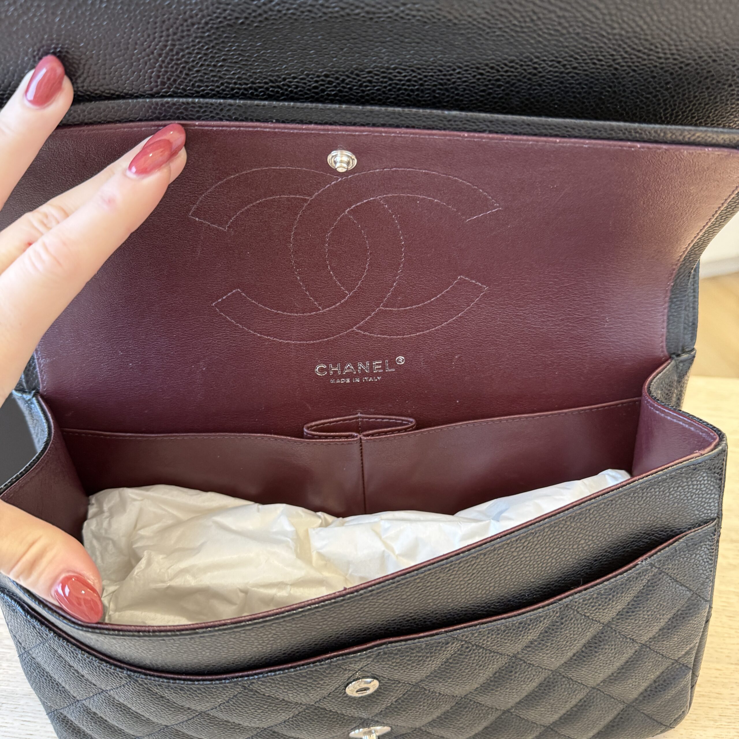 rdcdn Chanel Caviar Quilted Jumbo Double Flap Black Silver Hardware