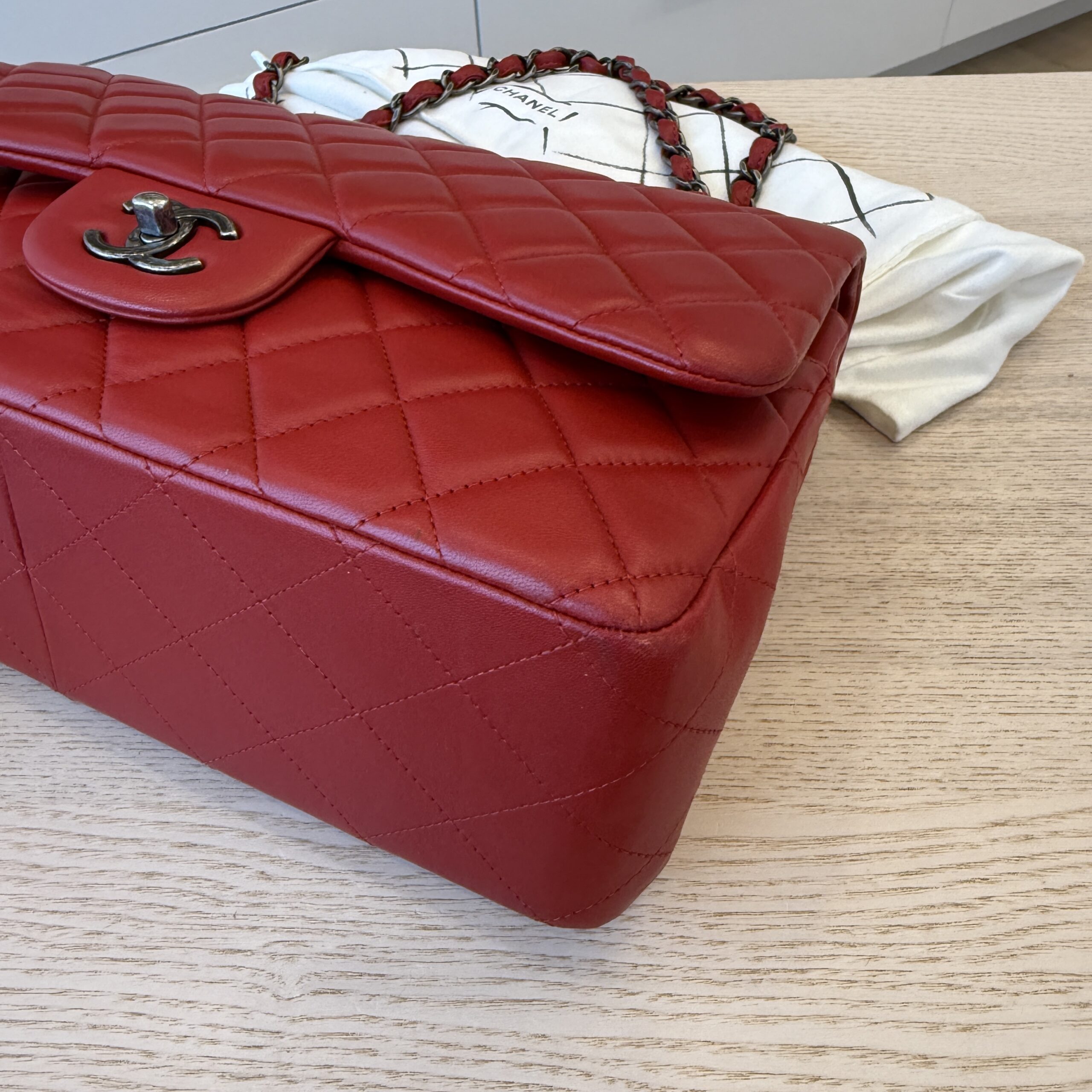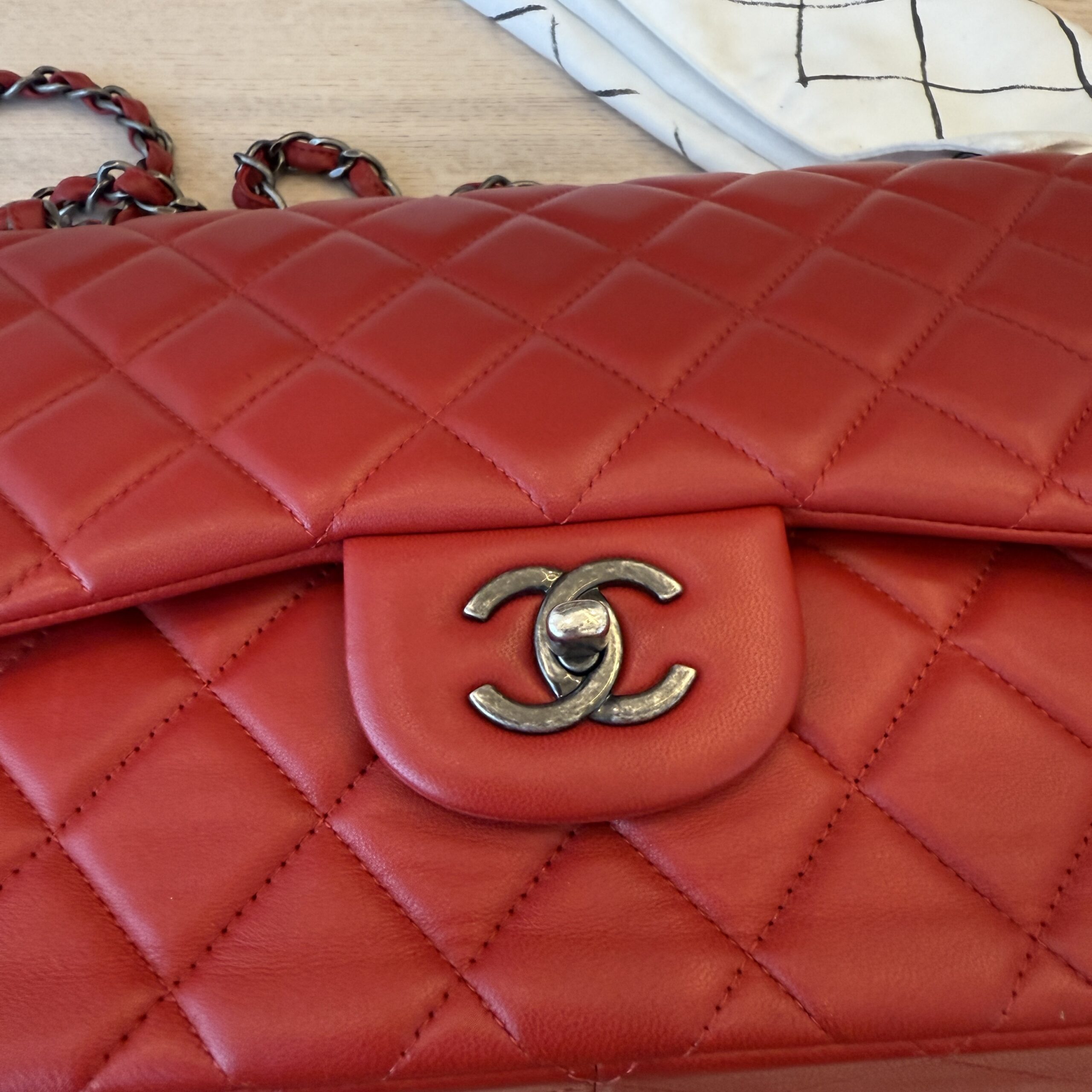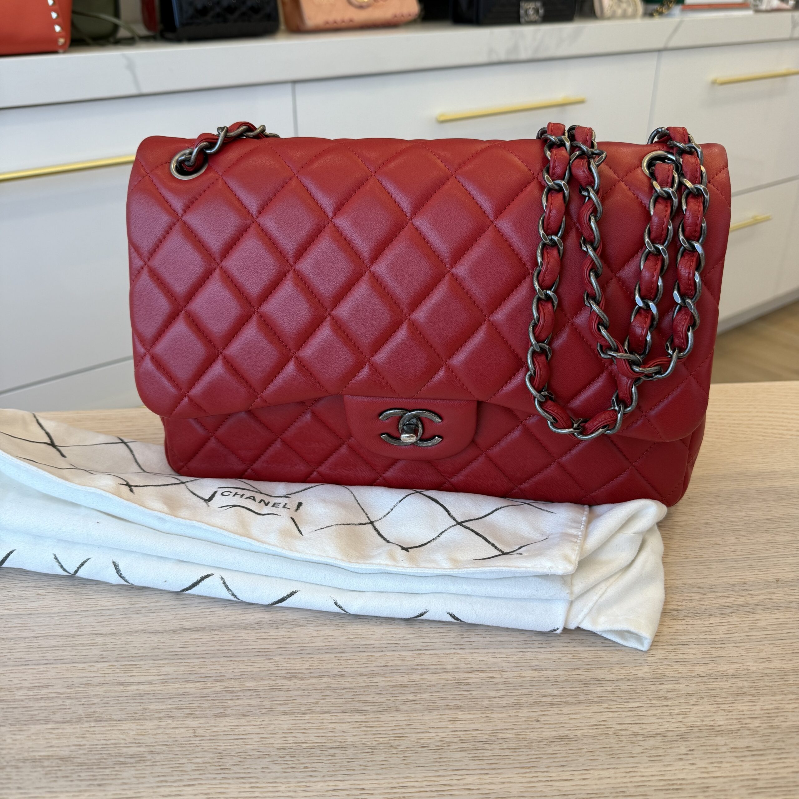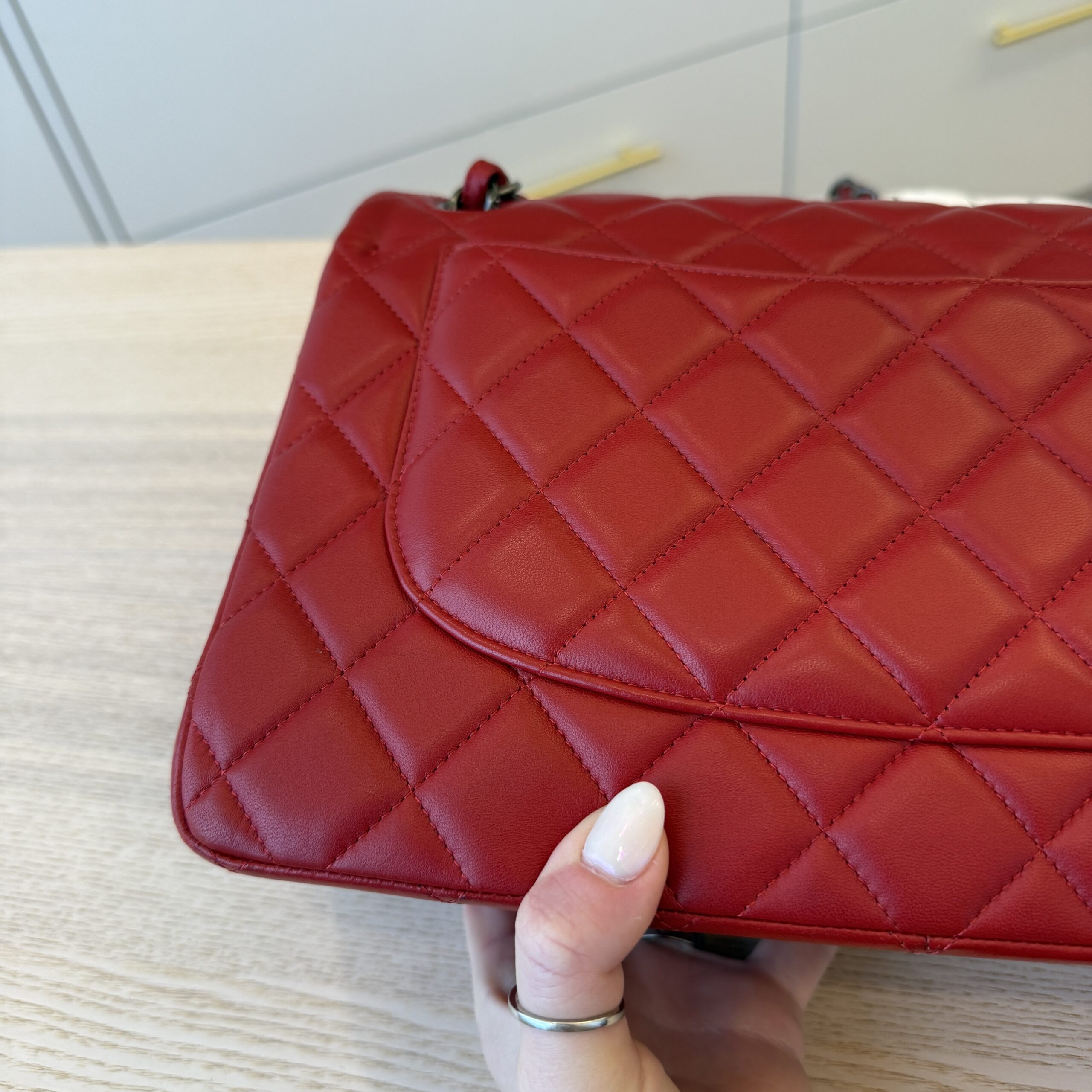 rdcdn Chanel Lambskin Quilted Jumbo Double Flap Red Gunmetal Hardware