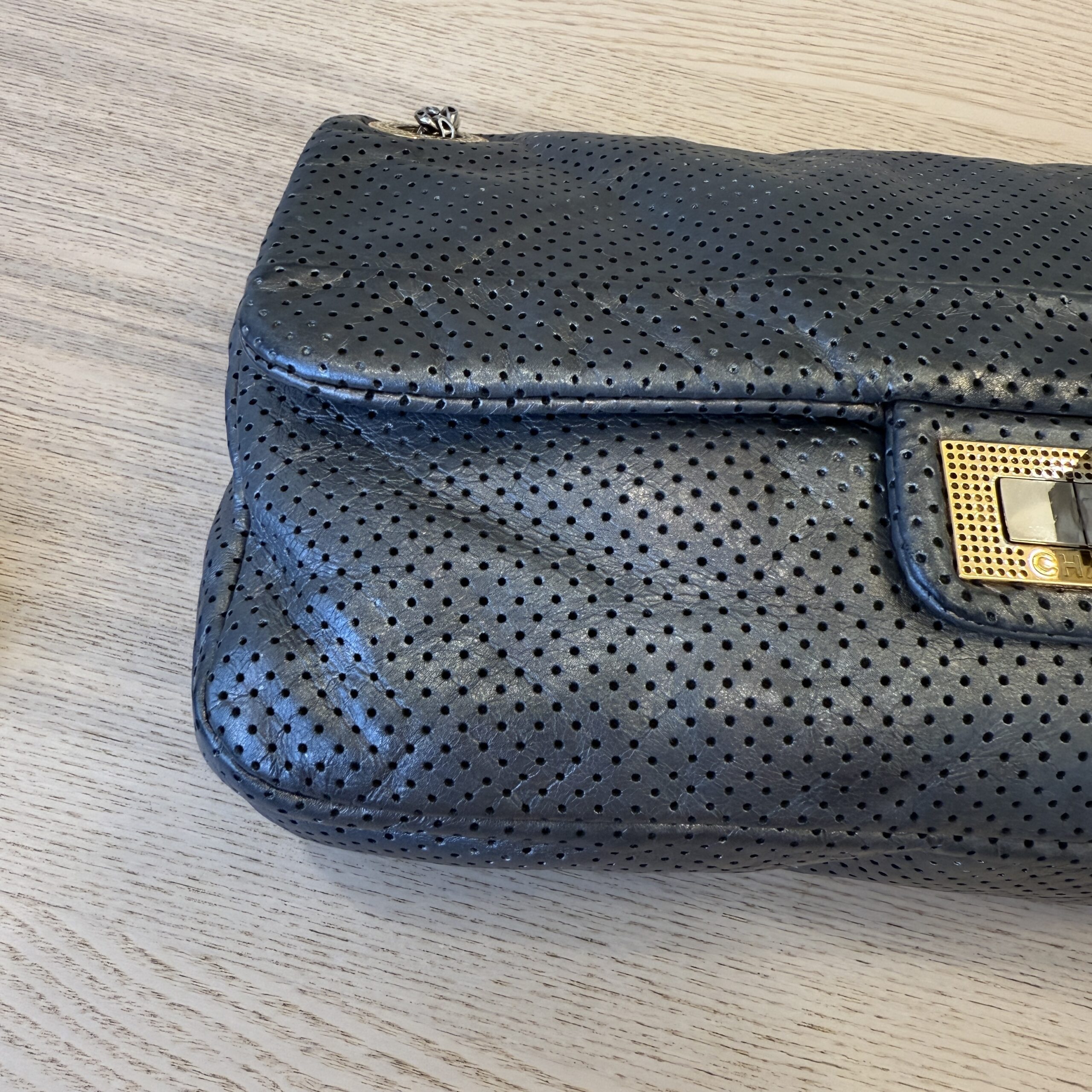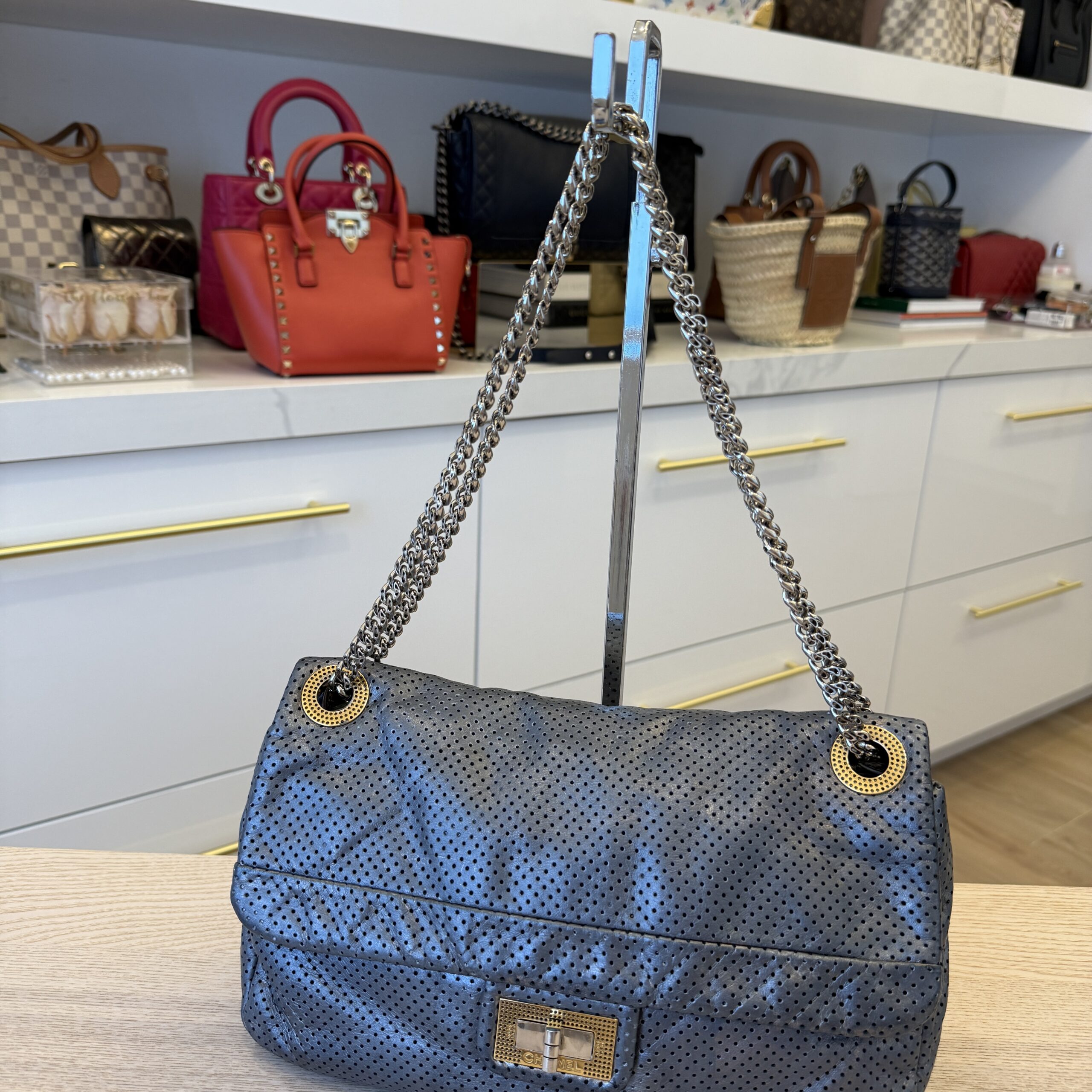 rdcdn Chanel Metallic Crackled Calfskin Perforated Drill Flap Silver