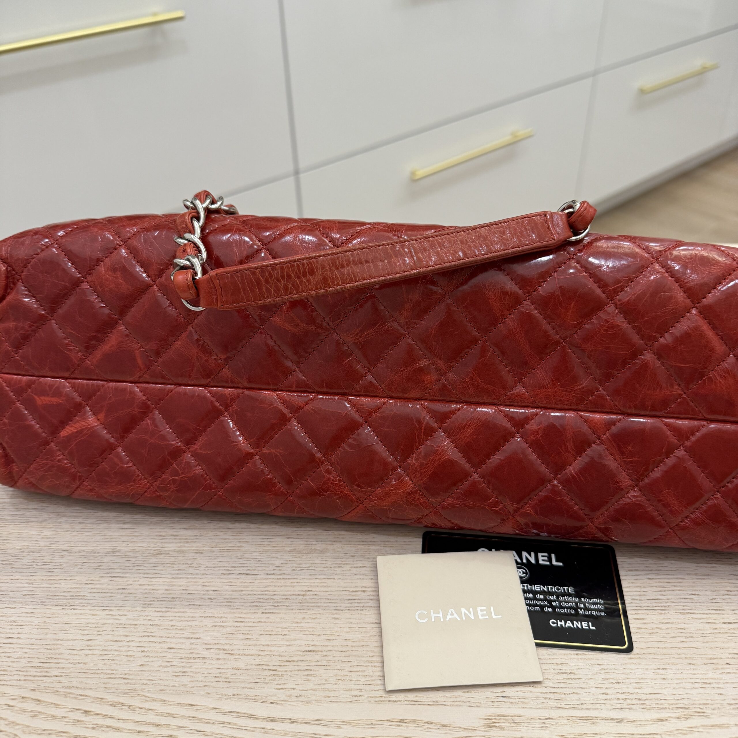 Chanel Red Crinkles Calfskin Leather Just Mademoiselle Bowling Bag