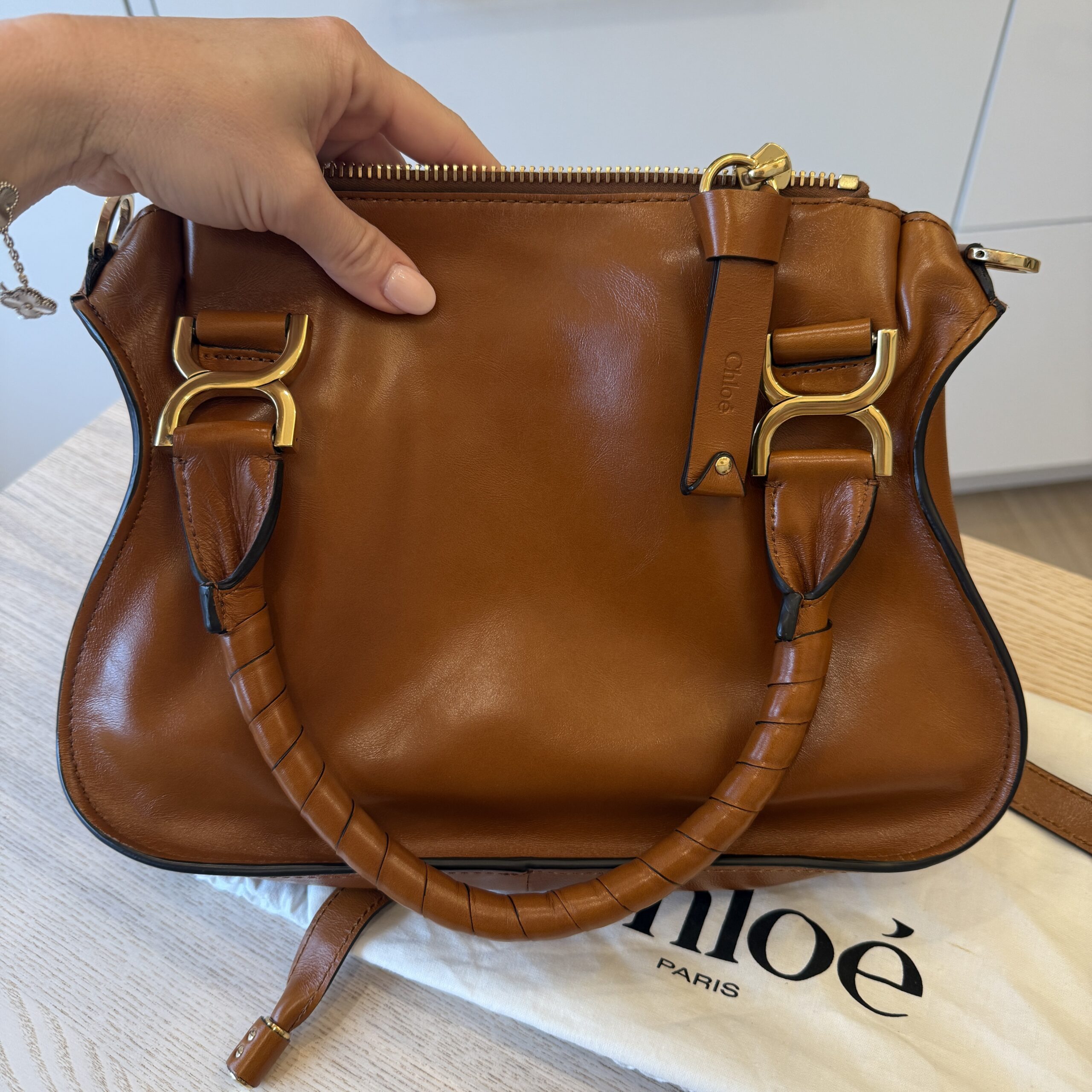 rdcdn Chloe Marcie Small Satchel Bag in Grained Calfskin Clay Brown