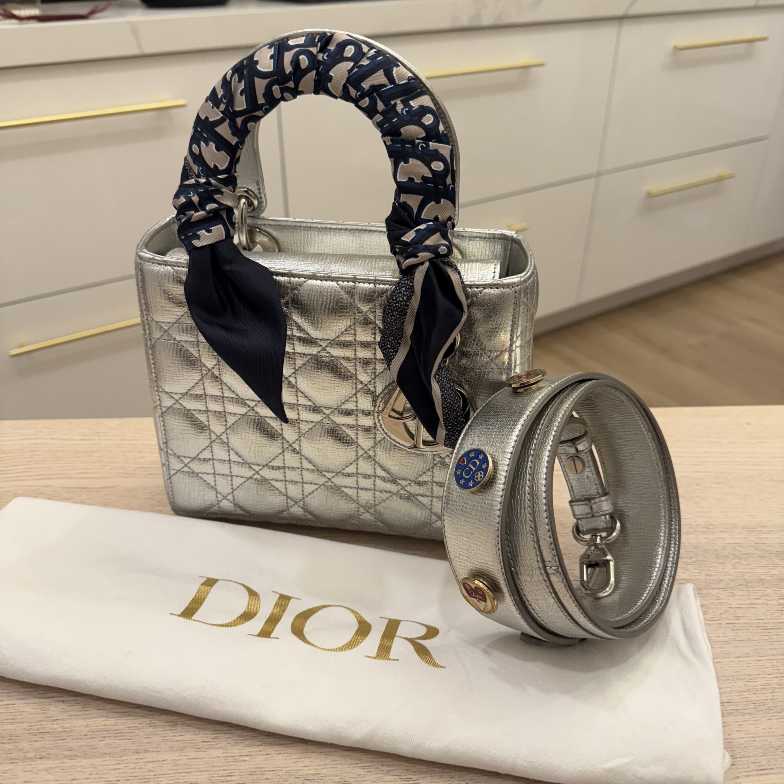 rdcdn Christian Dior Metallic Grained Calfskin Cannage Small Lady Dior Silver and Silver Hardware