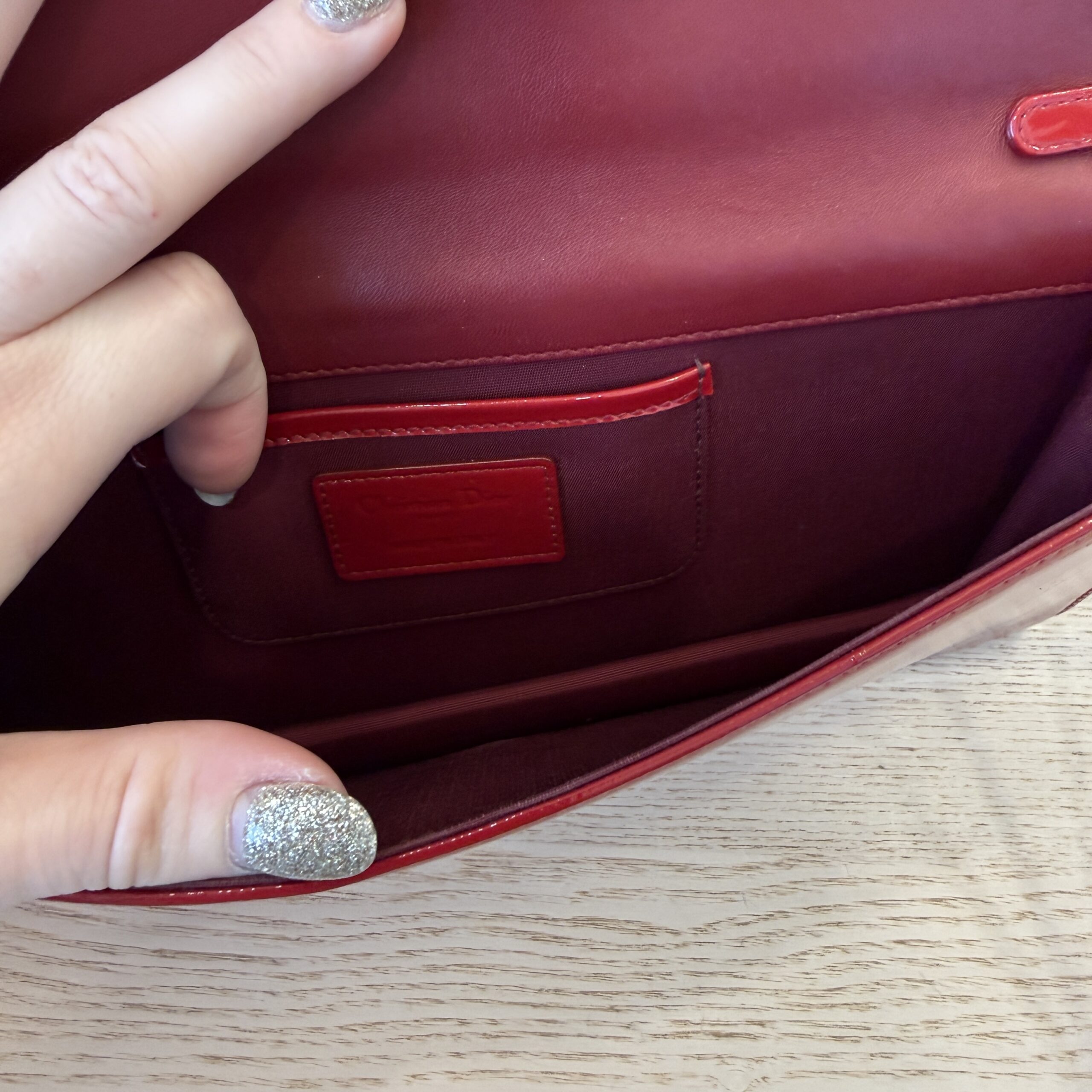 Christian Dior Red Quilted Cannage Patent Leather Lady Dior Clutch Bag