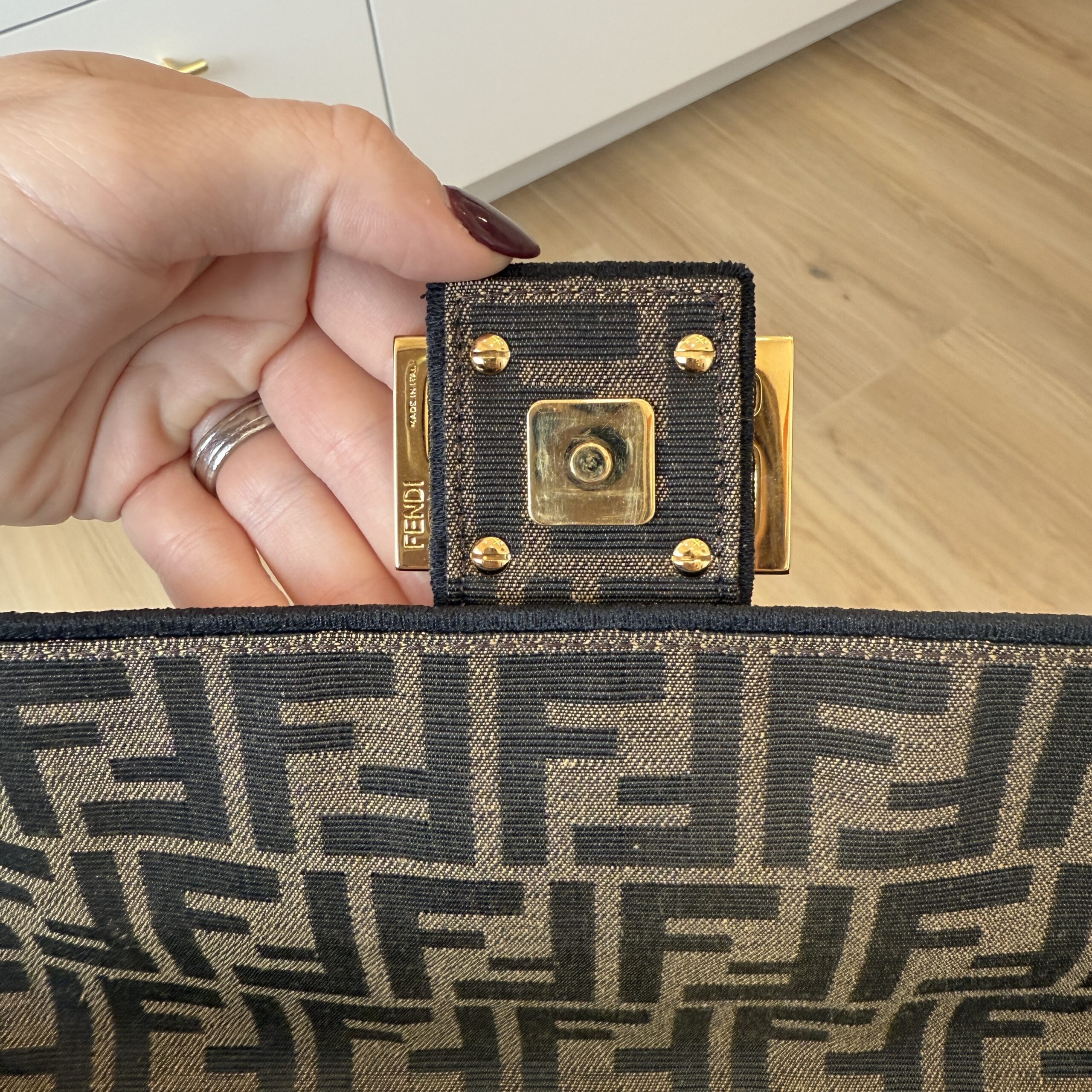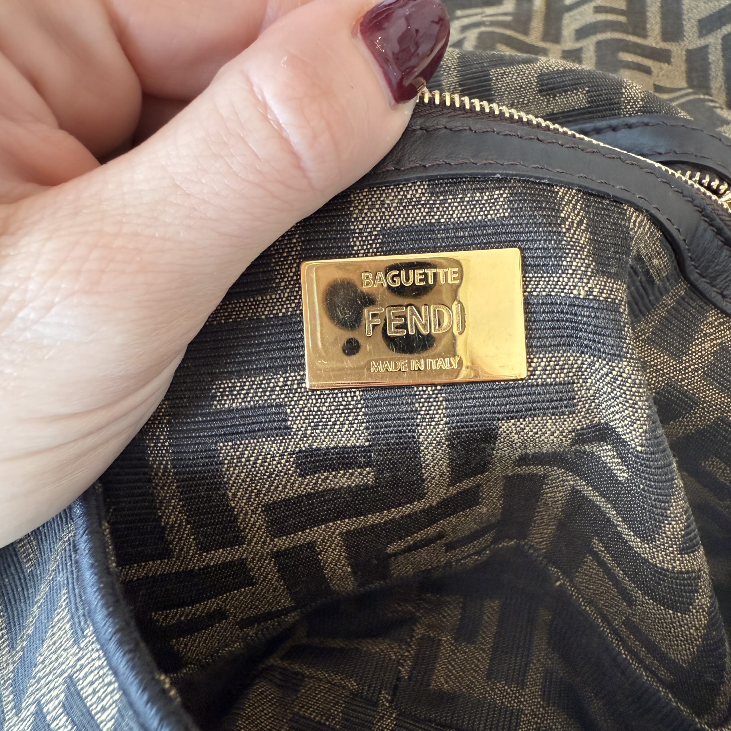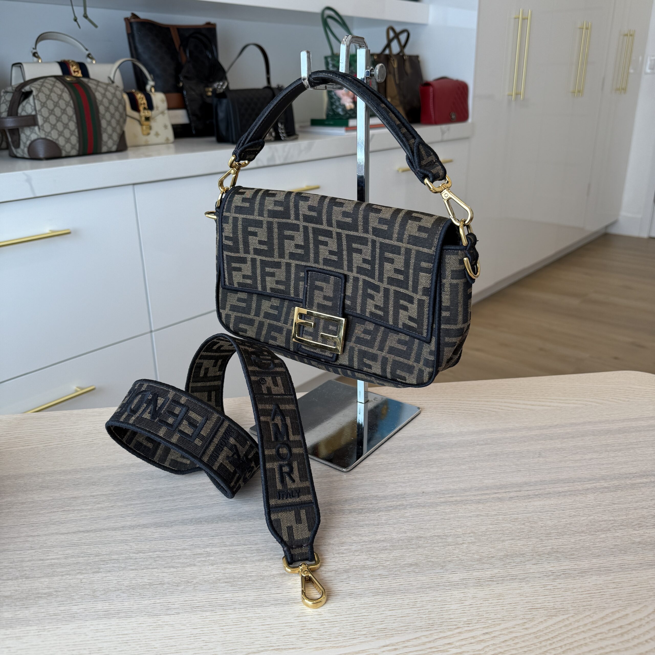 rdcdn Fendi Fabric Jacquard FF 1974 Medium Baguette Tobacco Moro Black