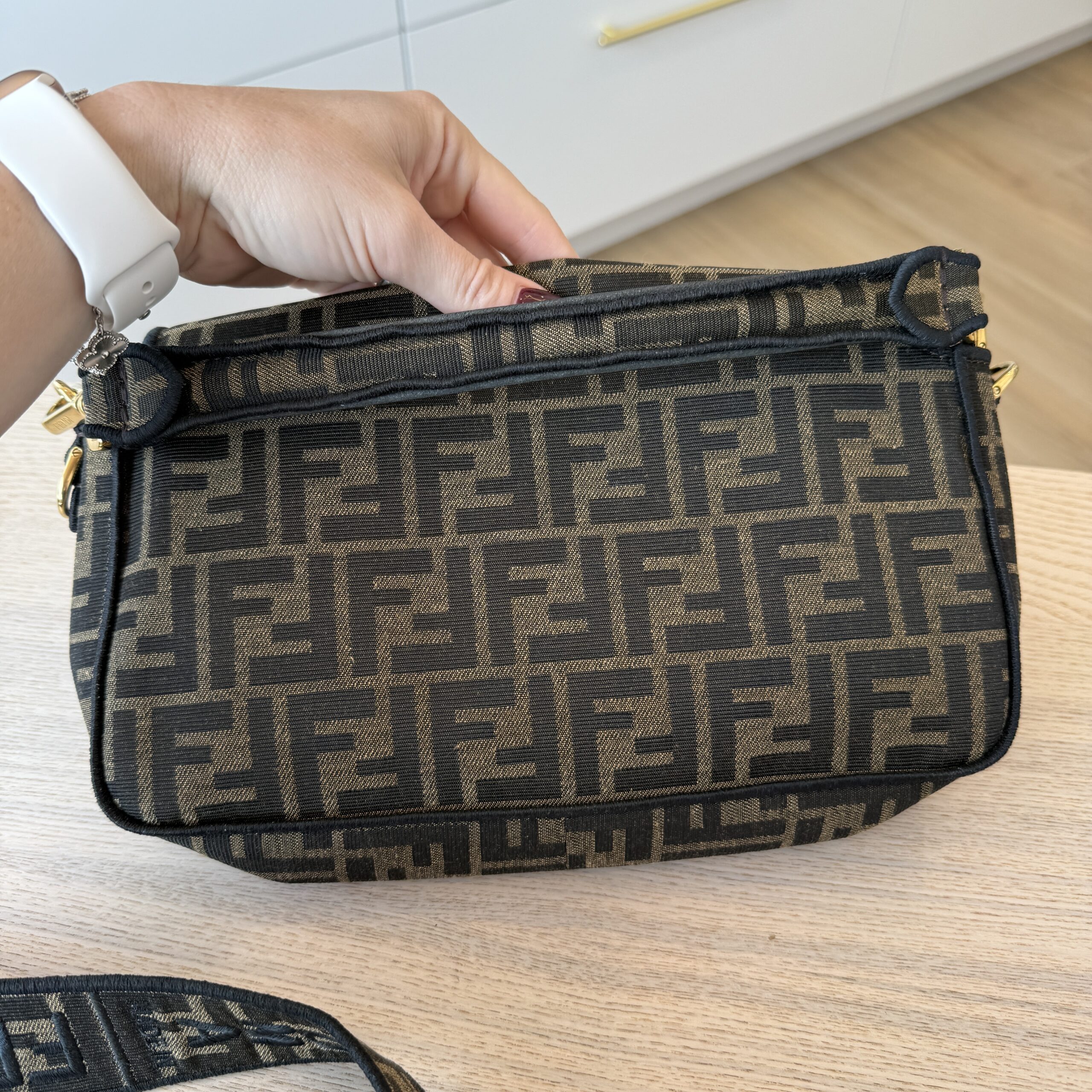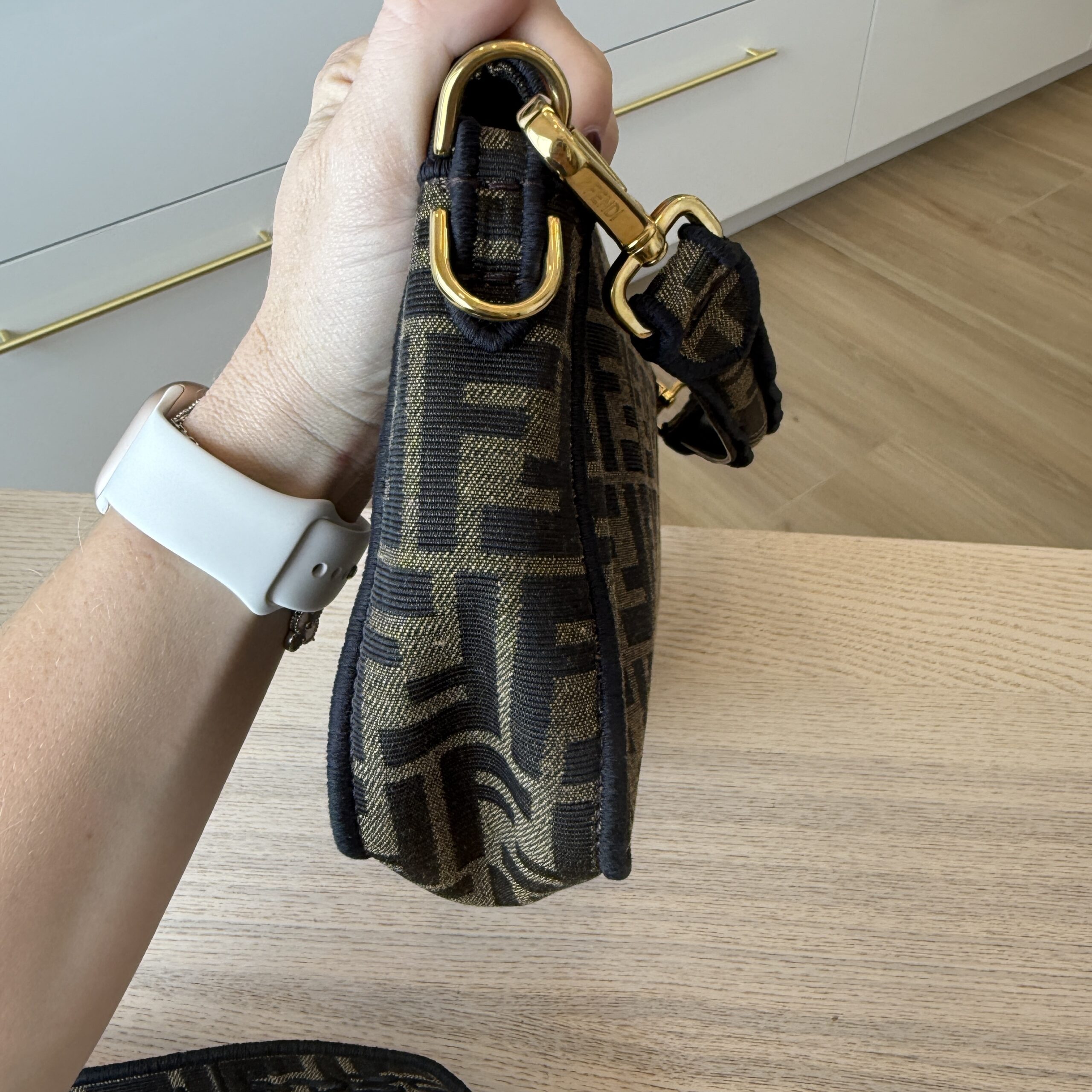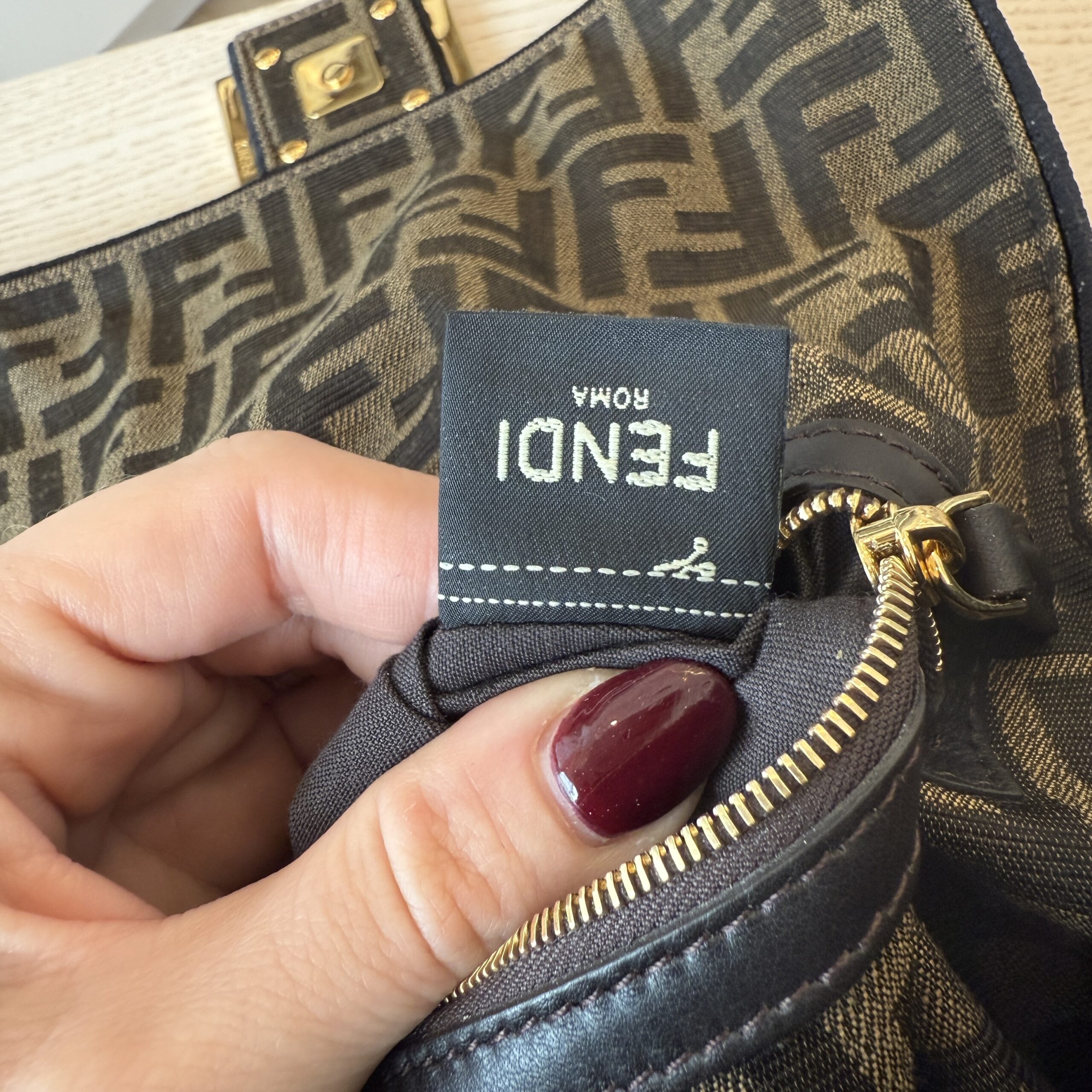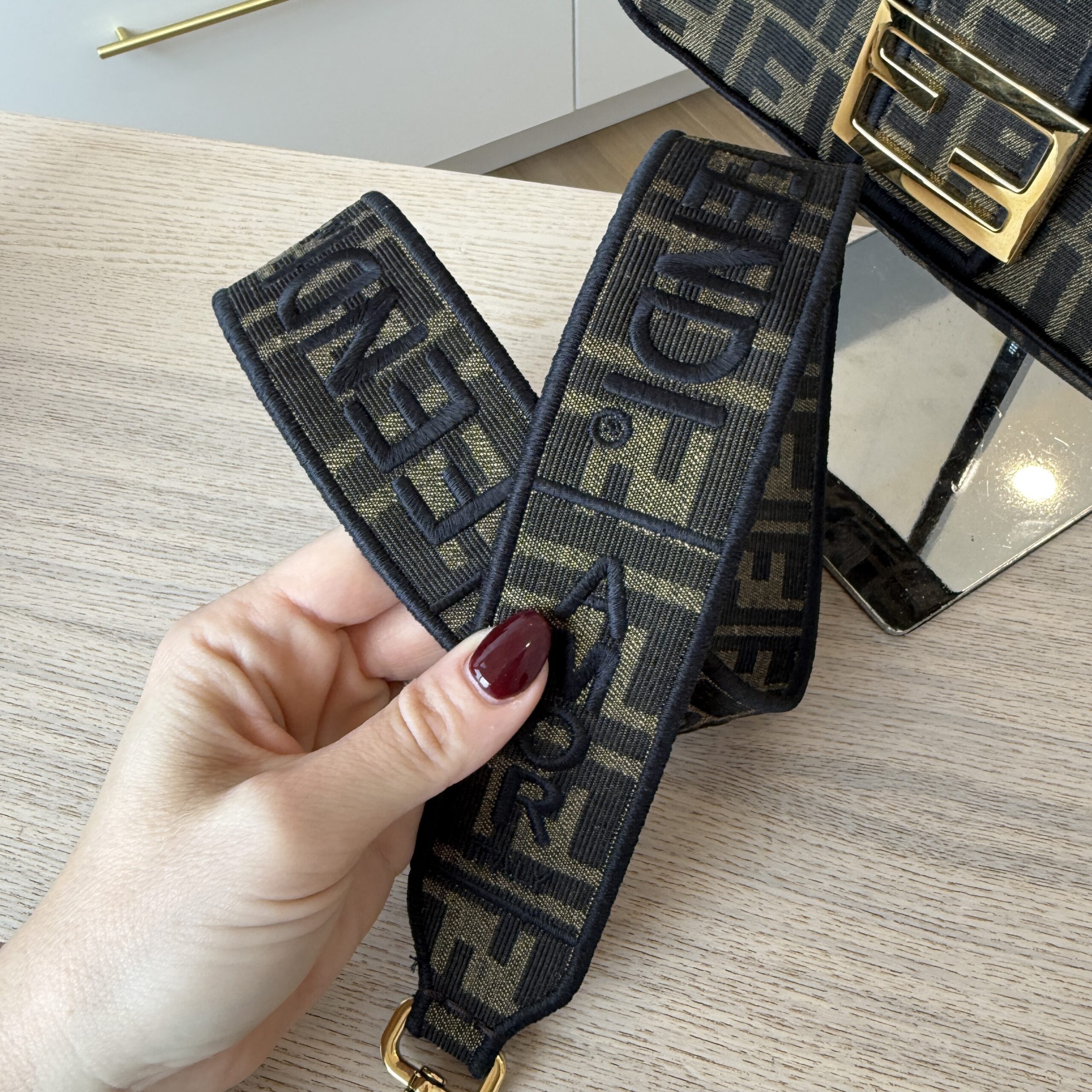 rdcdn Fendi Fabric Jacquard FF 1974 Medium Baguette Tobacco Moro Black