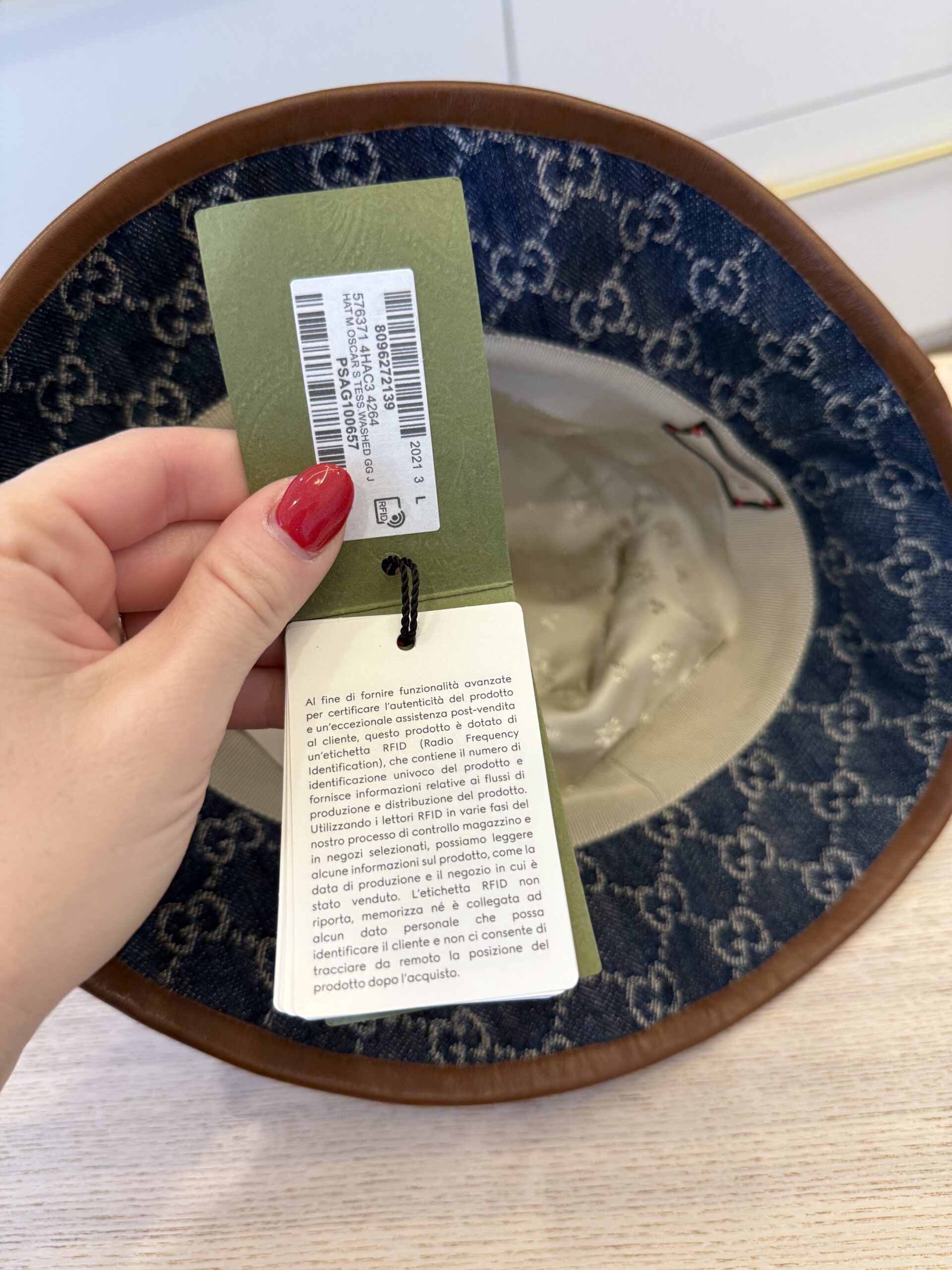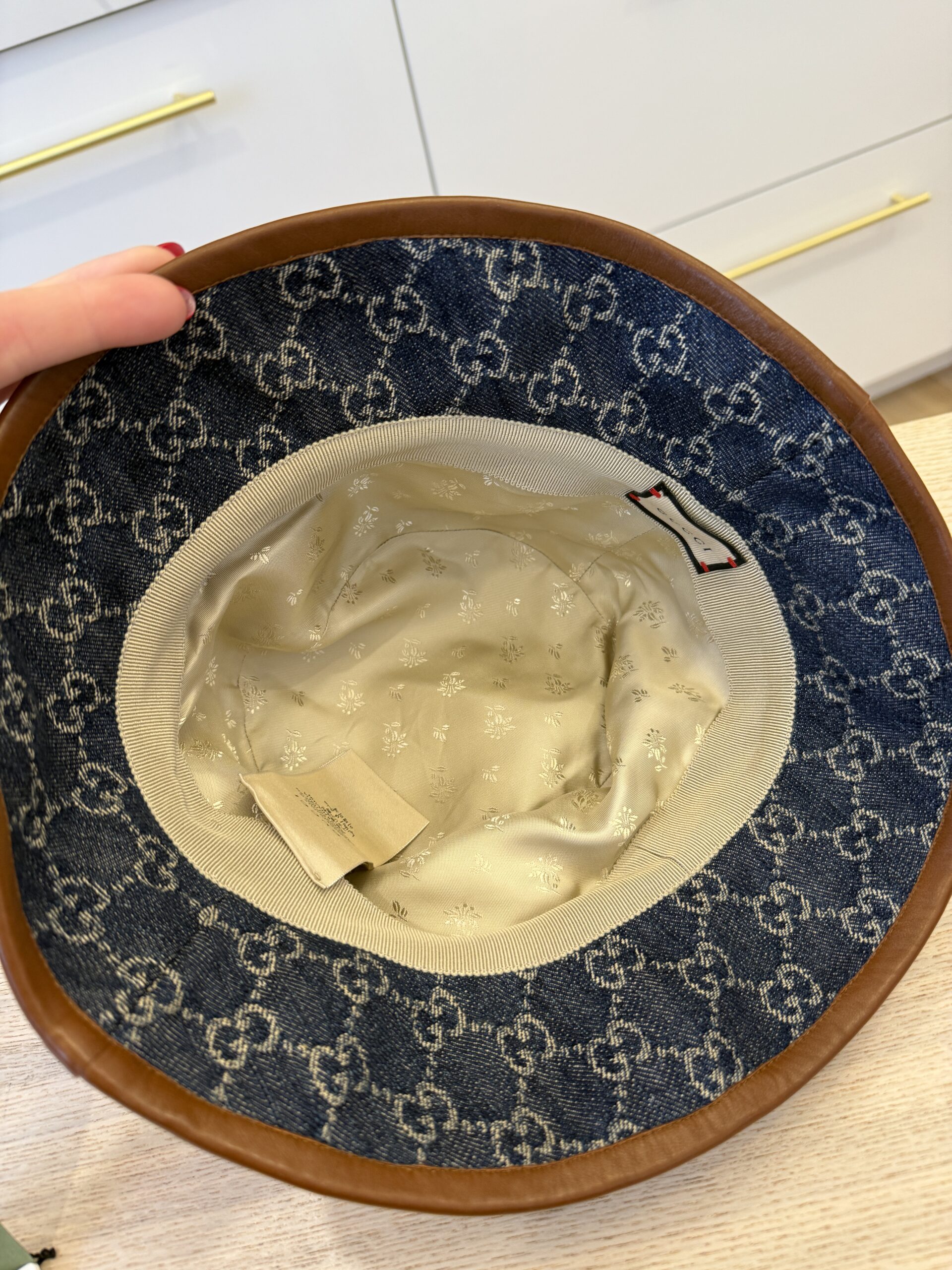 rdcdn Gucci Blue Denim Leather Trim Large Bucket Hat