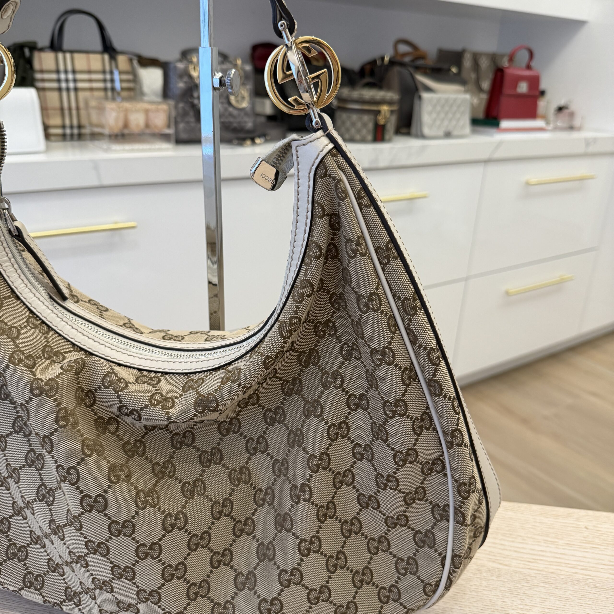 Gucci Brown GG Canvas Twins Shoulder Bag White Beige