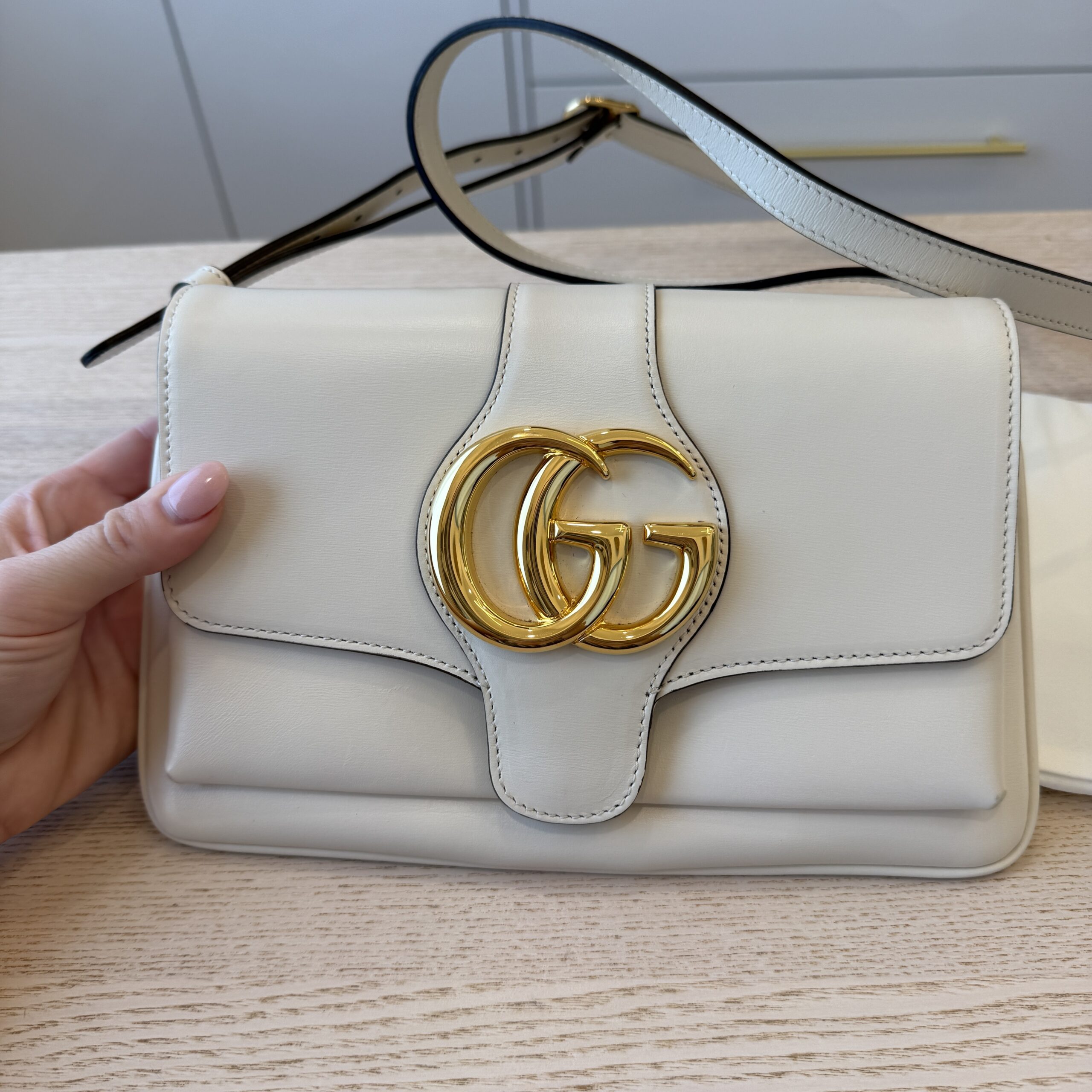 Gucci Calfskin Small Arli Flap Shoulder Bag Mystic White
