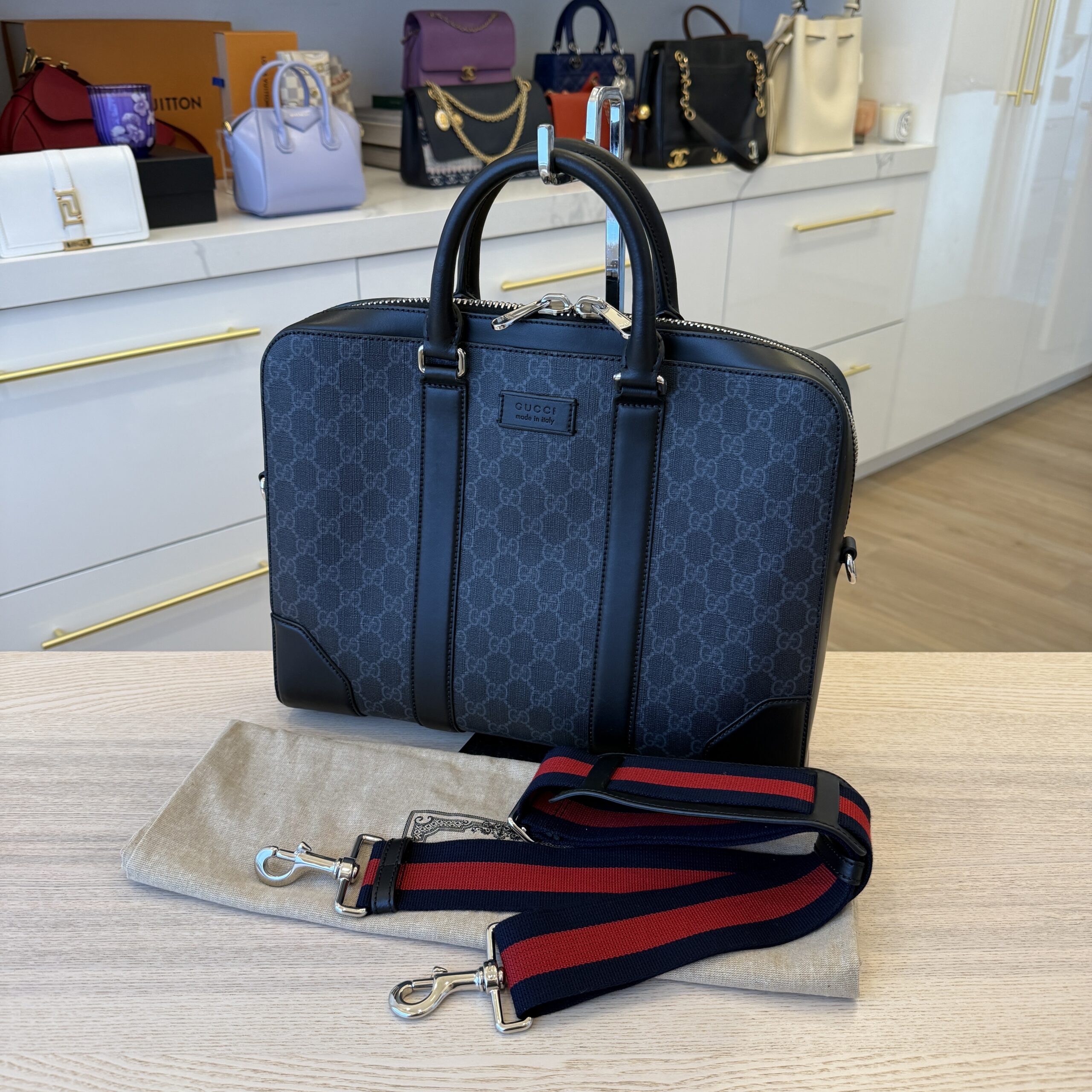 rdcdn Gucci GG Supreme Monogram Appia Calfskin Web Briefcase Black