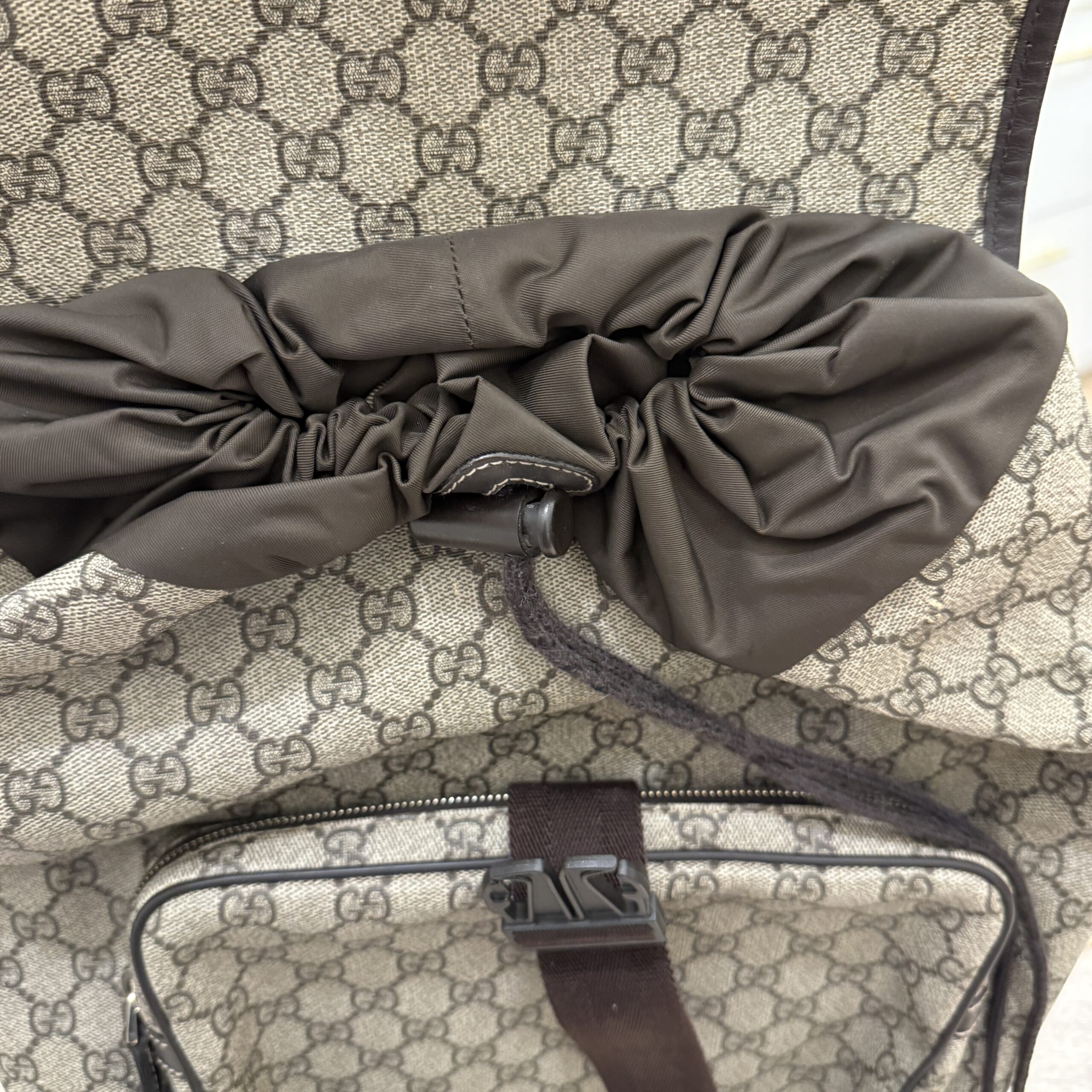 Gucci GG Supreme Monogram Medium Single Buckle Rucksack Backpack Beige Ebony Brown