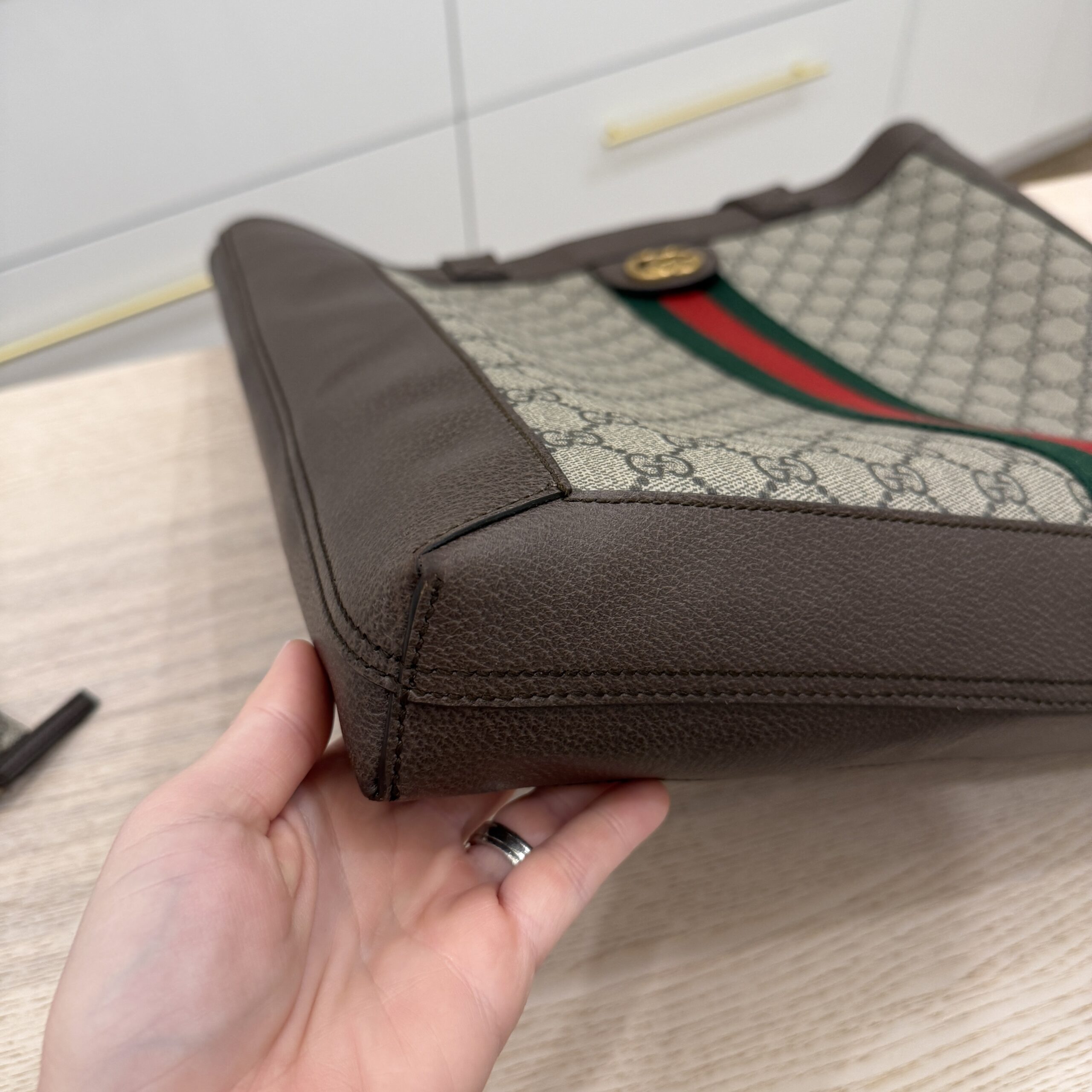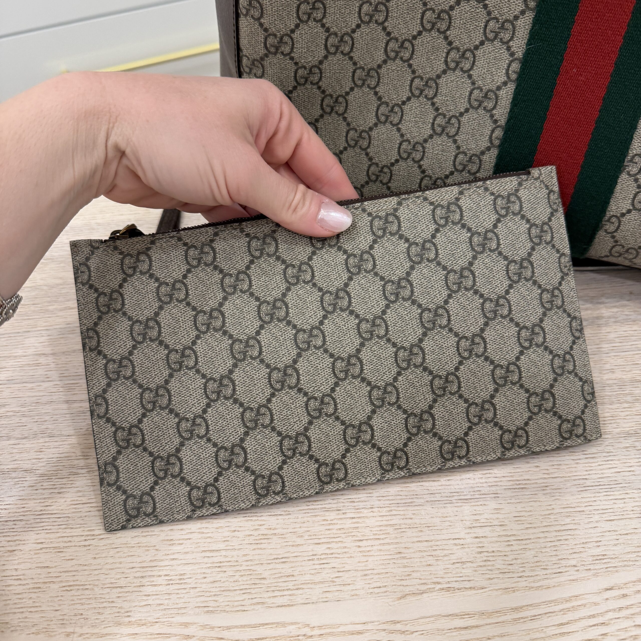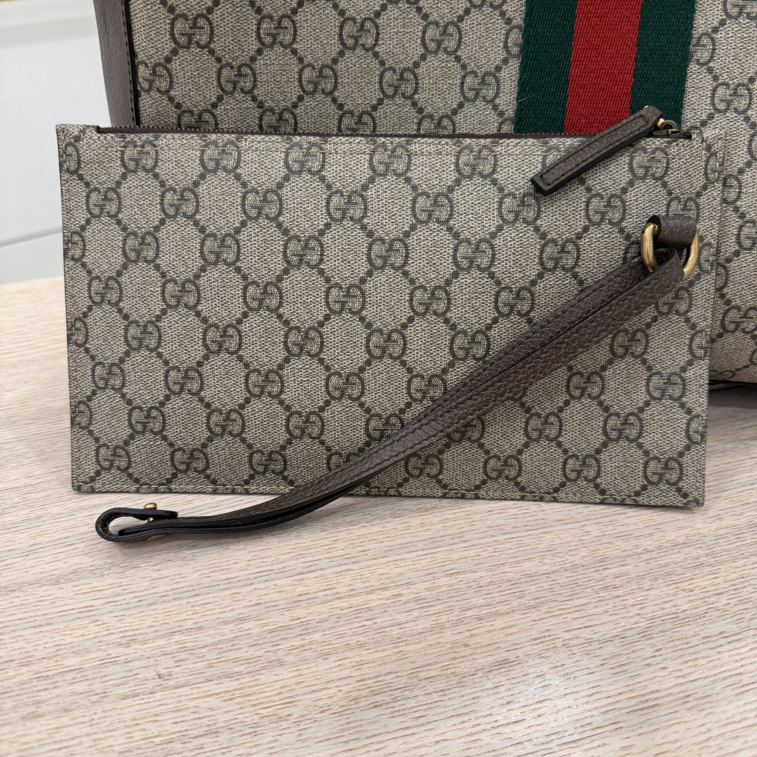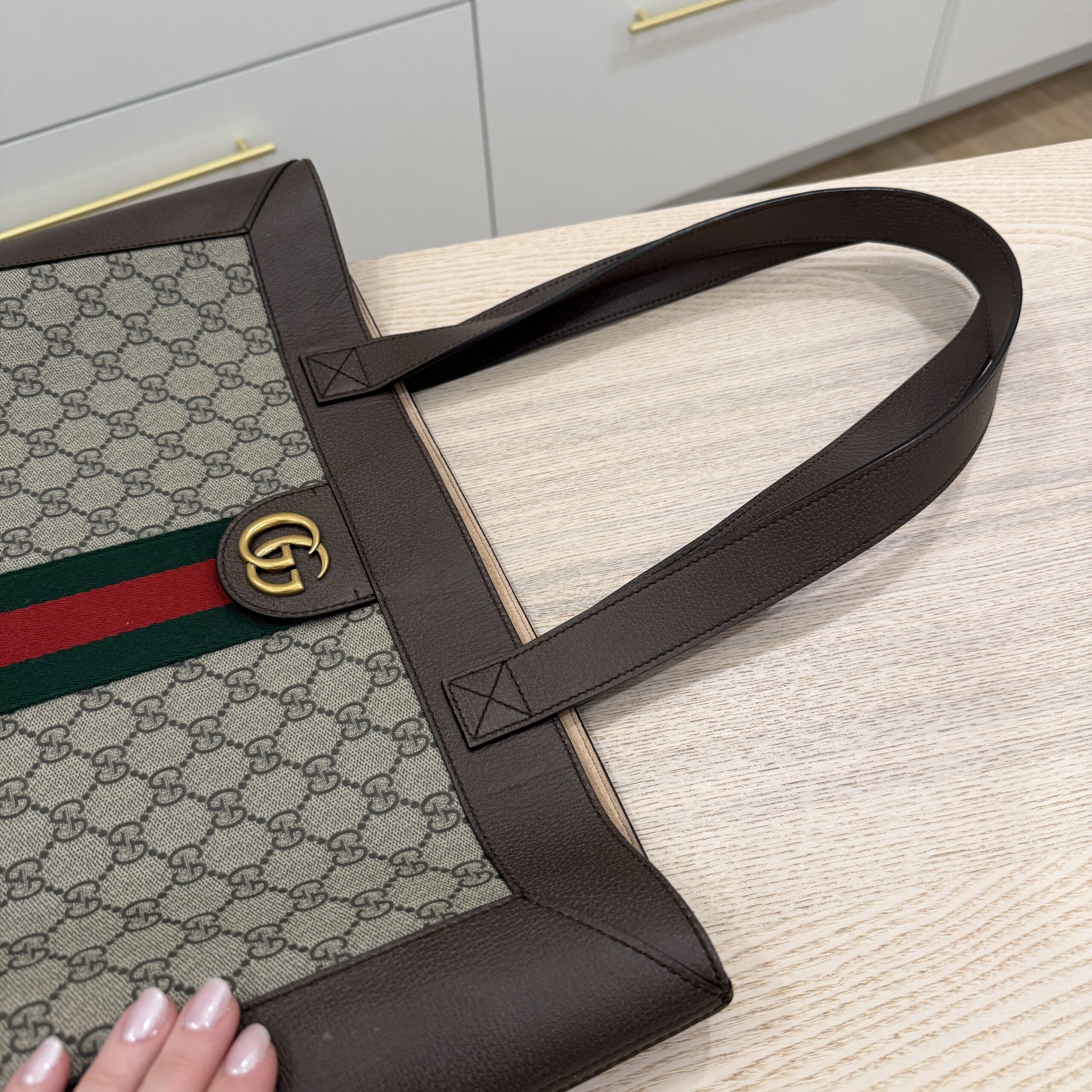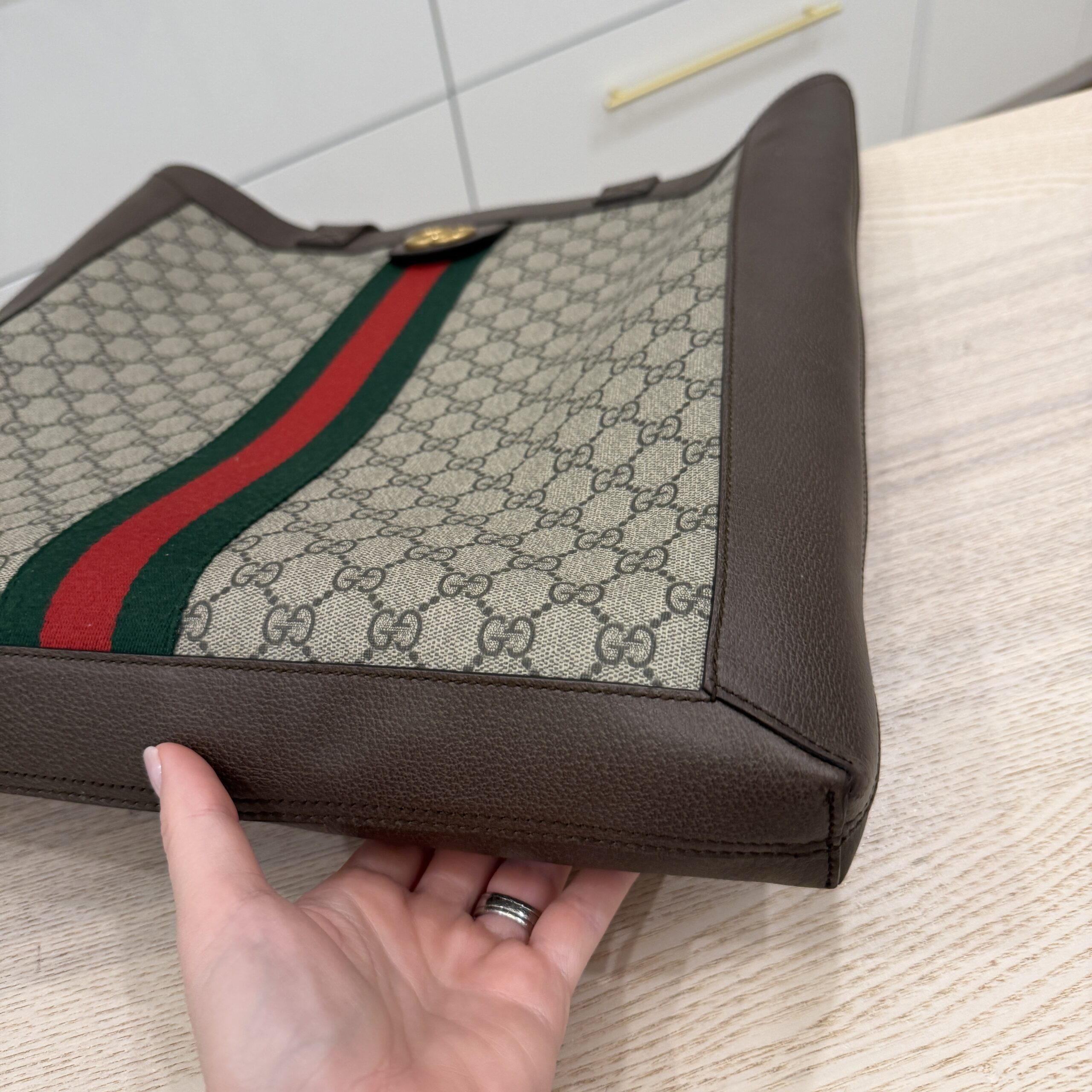 Gucci GG Supreme Monogram Web Large Ophidia Vertical Shopping Tote Brown
