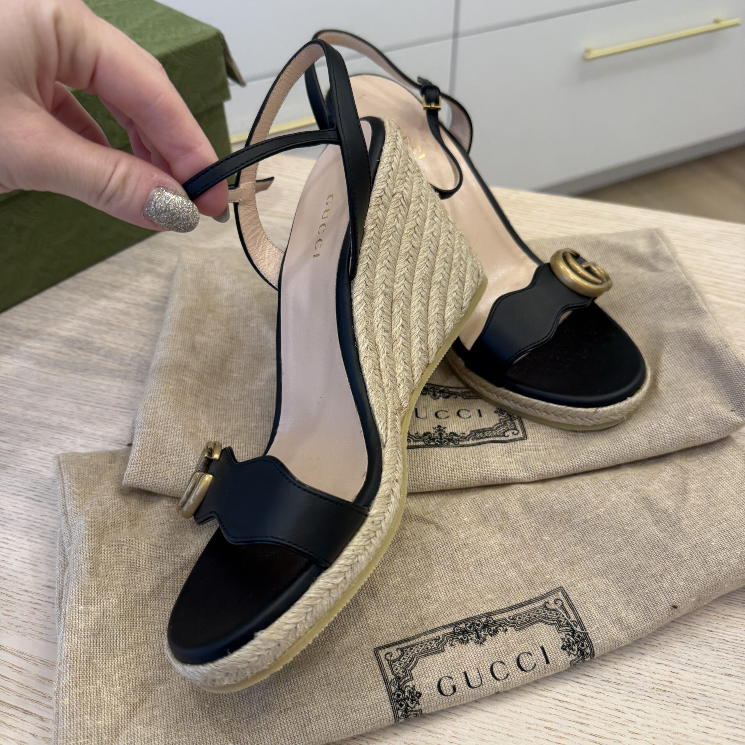 rdcdn Gucci Marmont GG Wedge Black 38.5