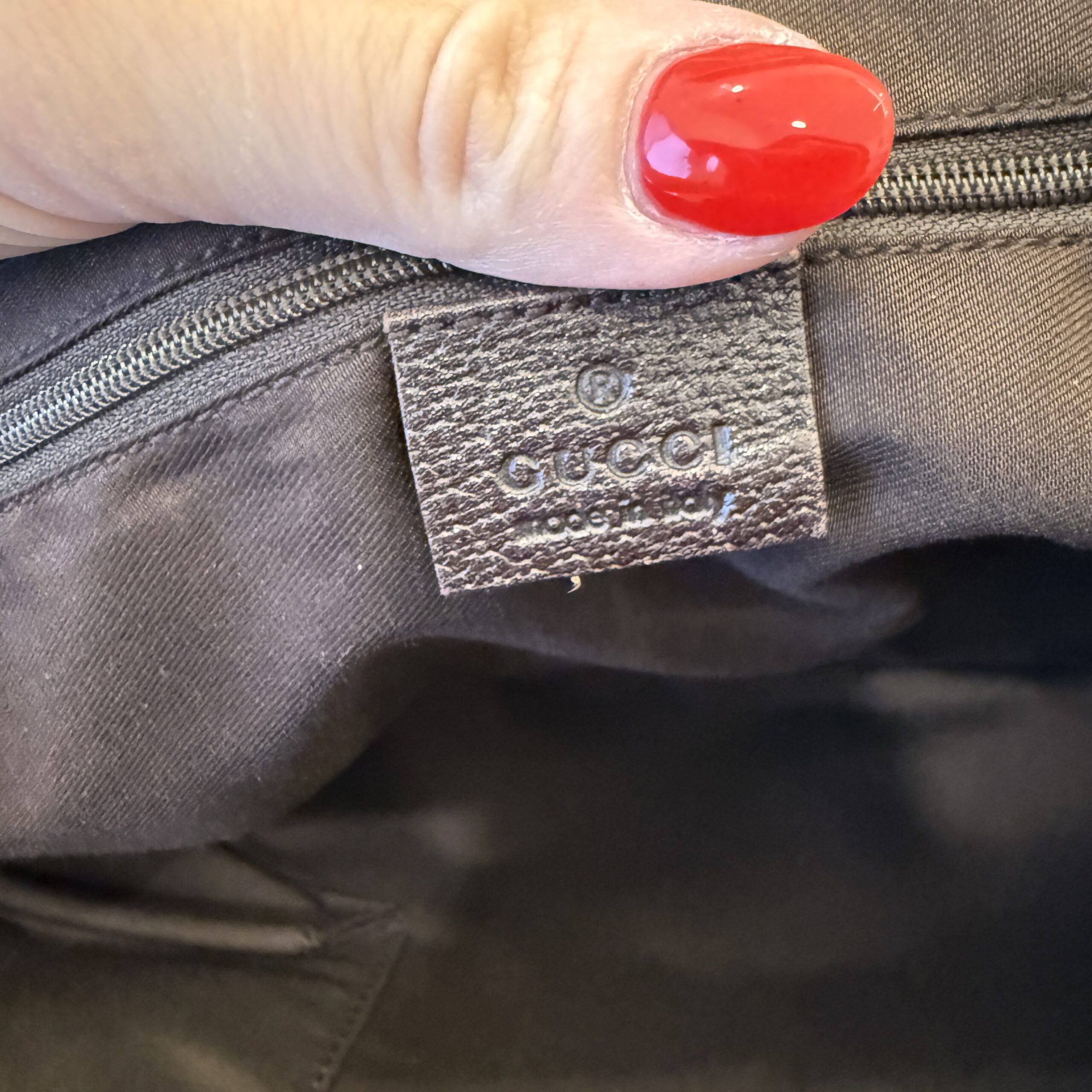 Clean inside, zipper runs smooth, light leather wear, light hardware scratches, good vintage condition