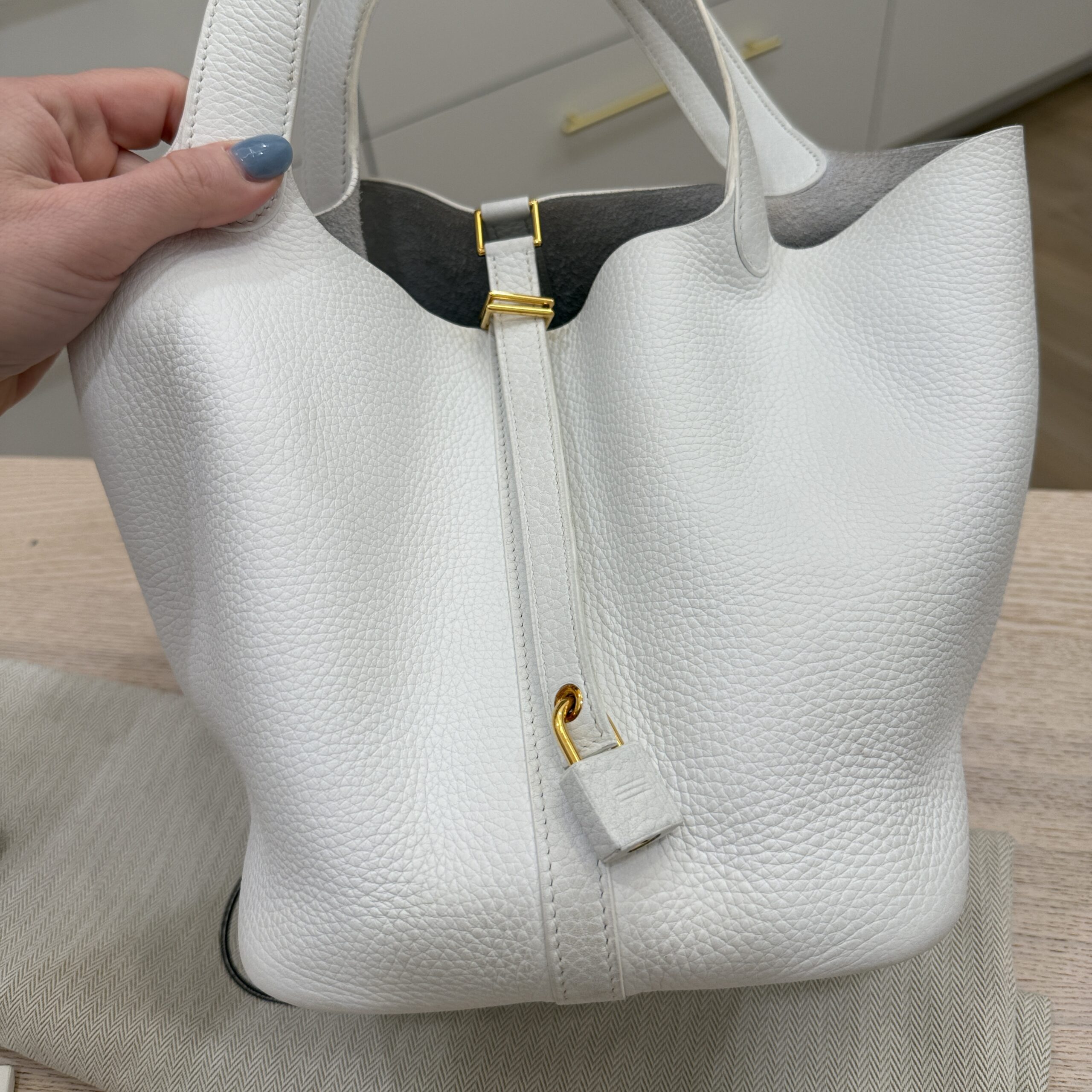 rdcdn Hermes Taurillon Clemence Picotin Lock 22 MM Blanc GHW