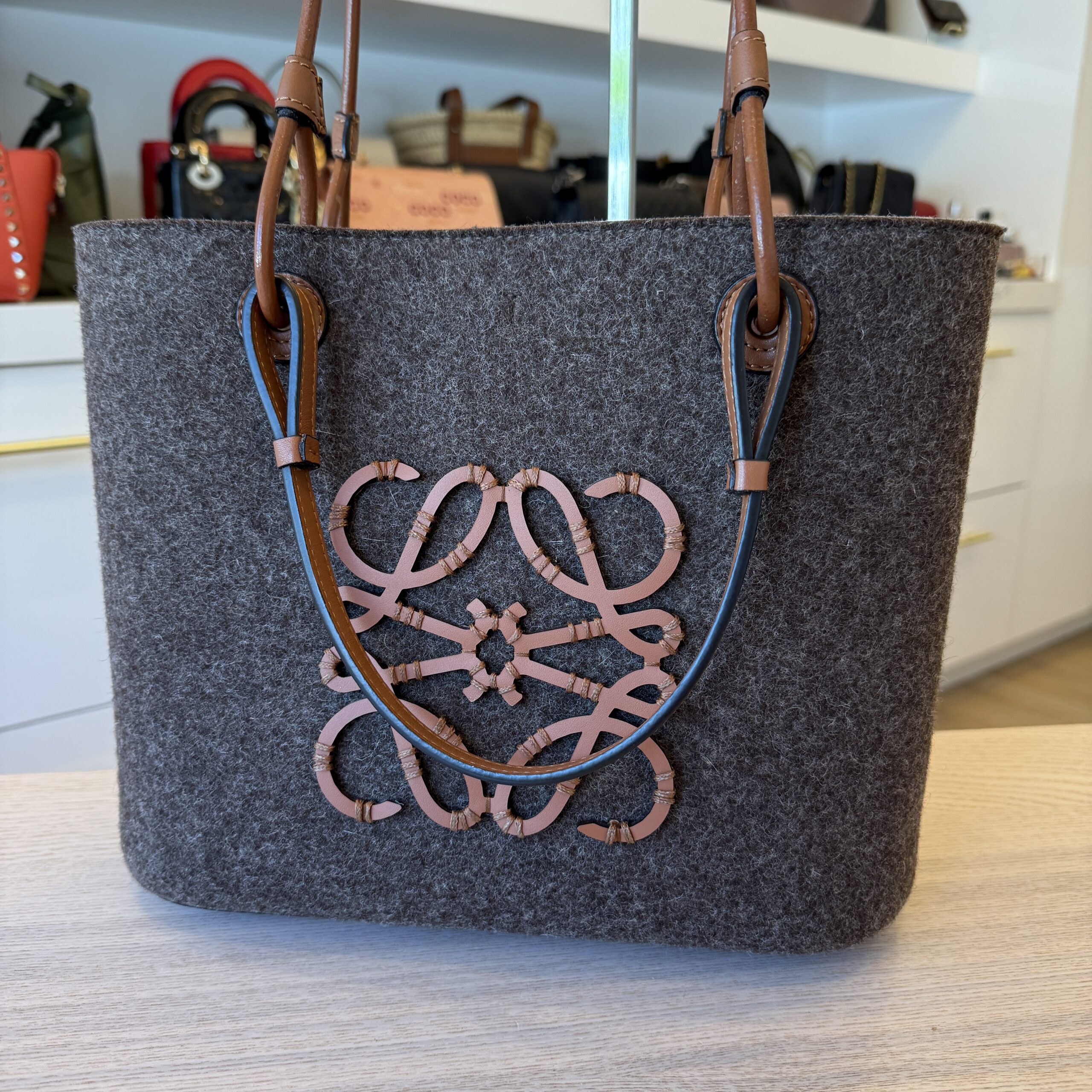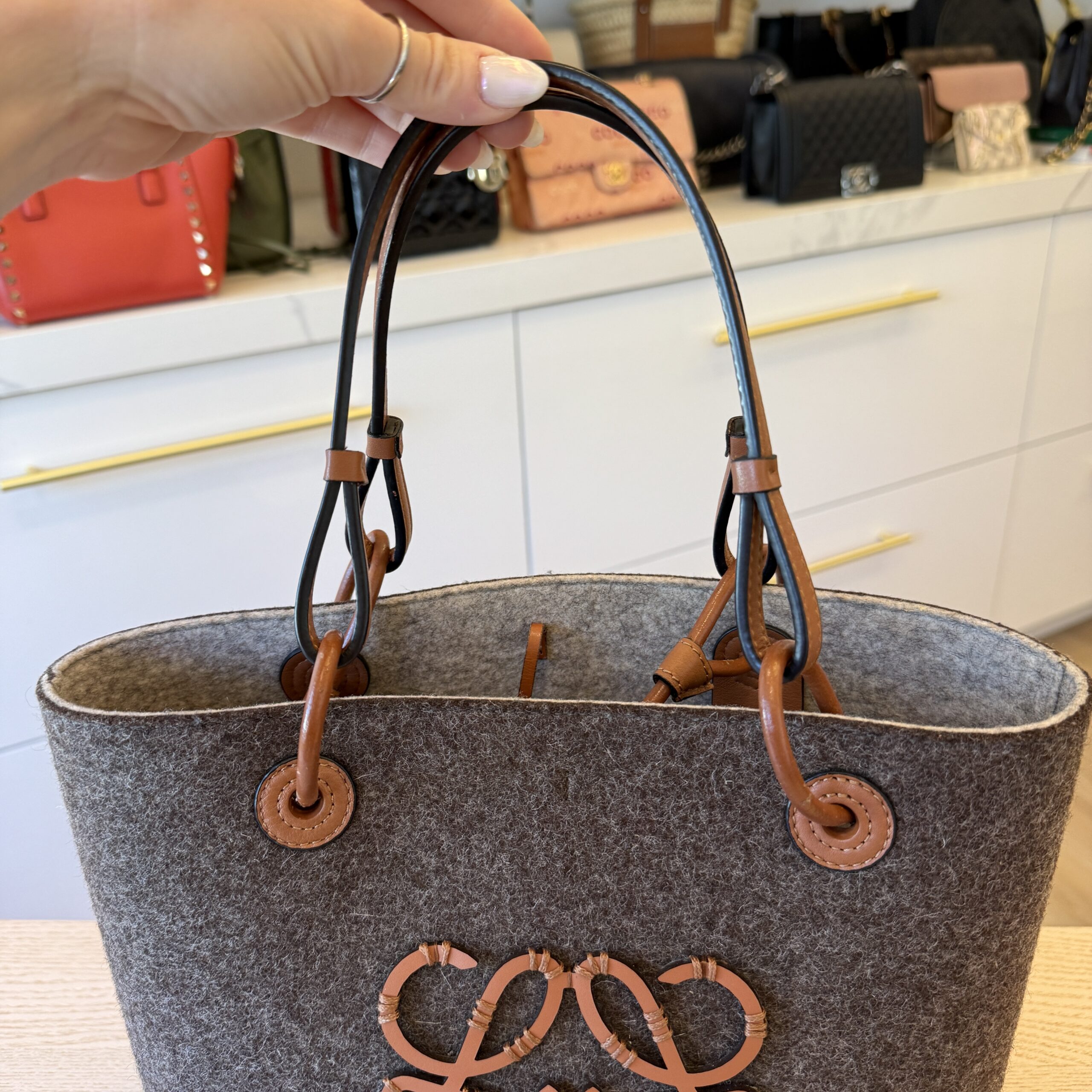 rdcdn LOEWE Felt Calfskin Small Anagram Square Basket Tote Brown Tan