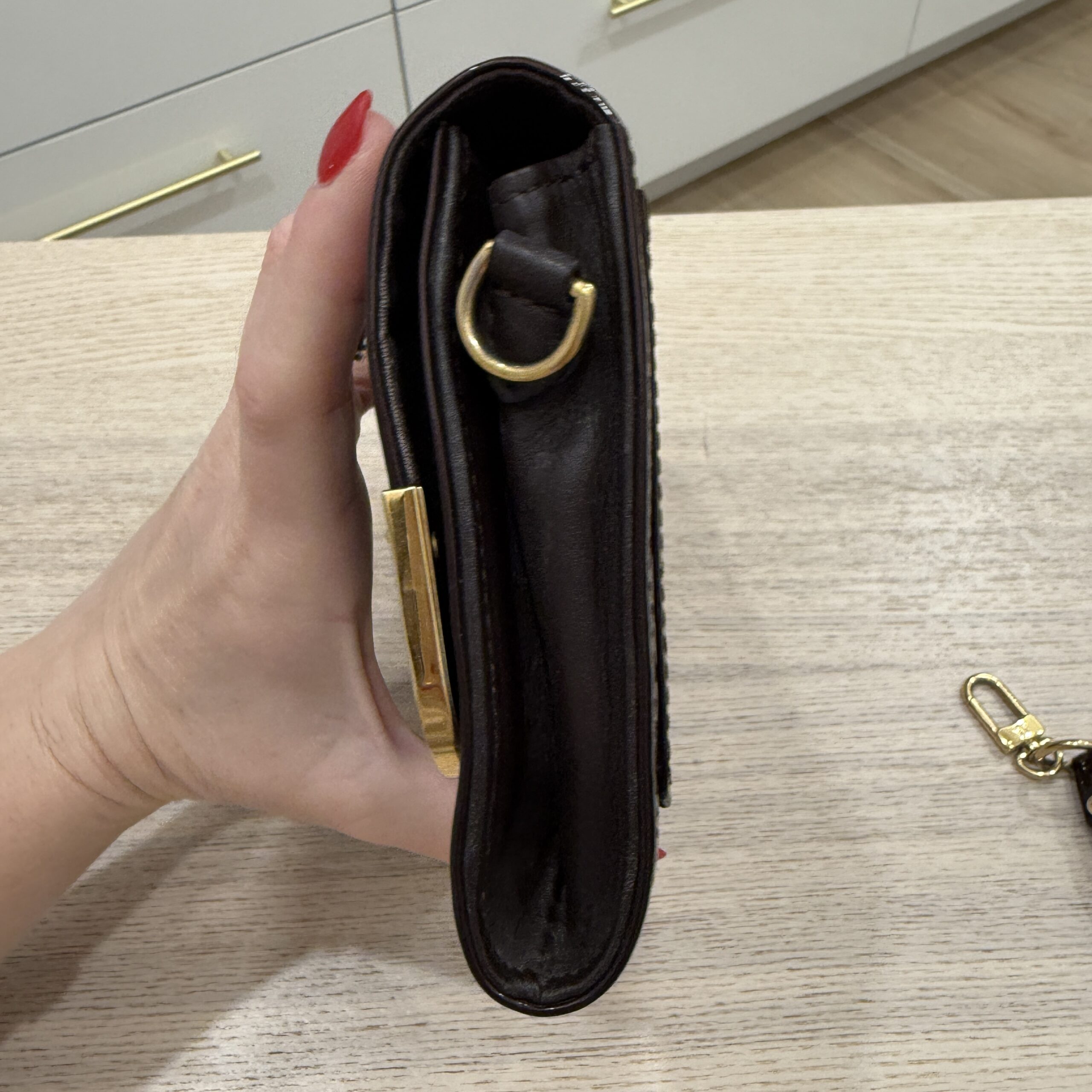 Fits pro max iPhone, light soiling and wear inside, adjustable strap, magnetic closure, light hardware wear and scratches as pictured, light canvas wear