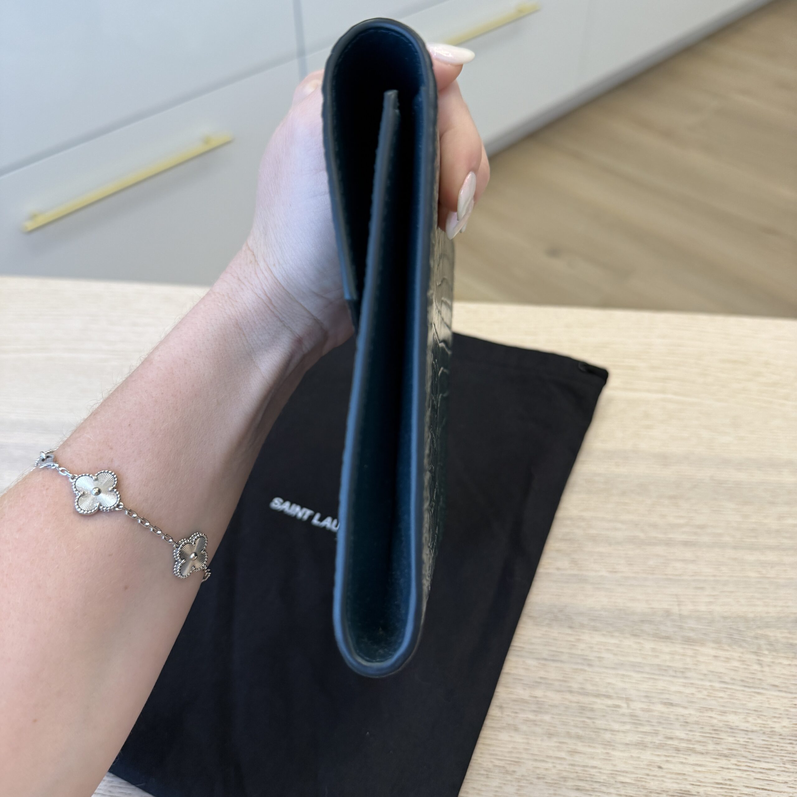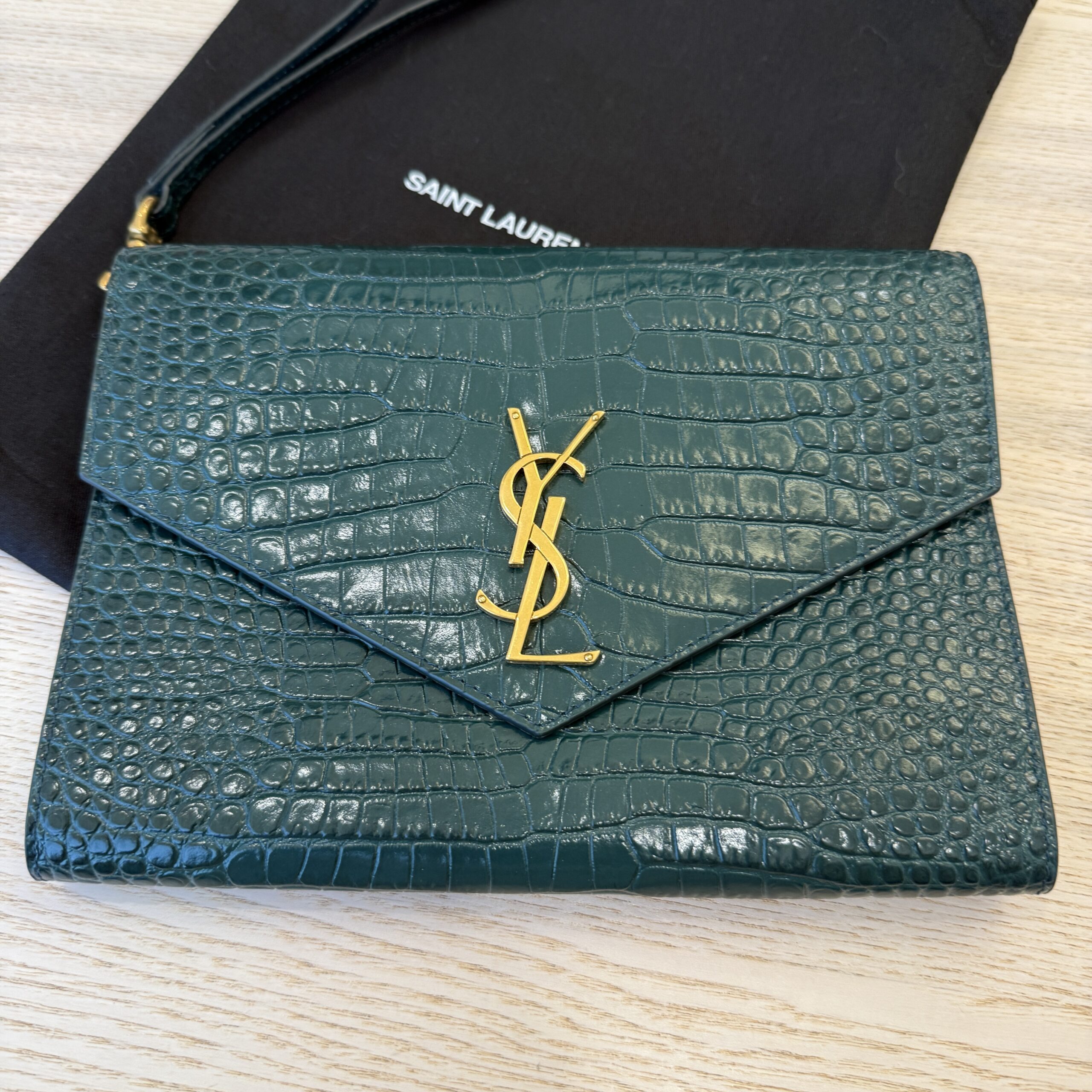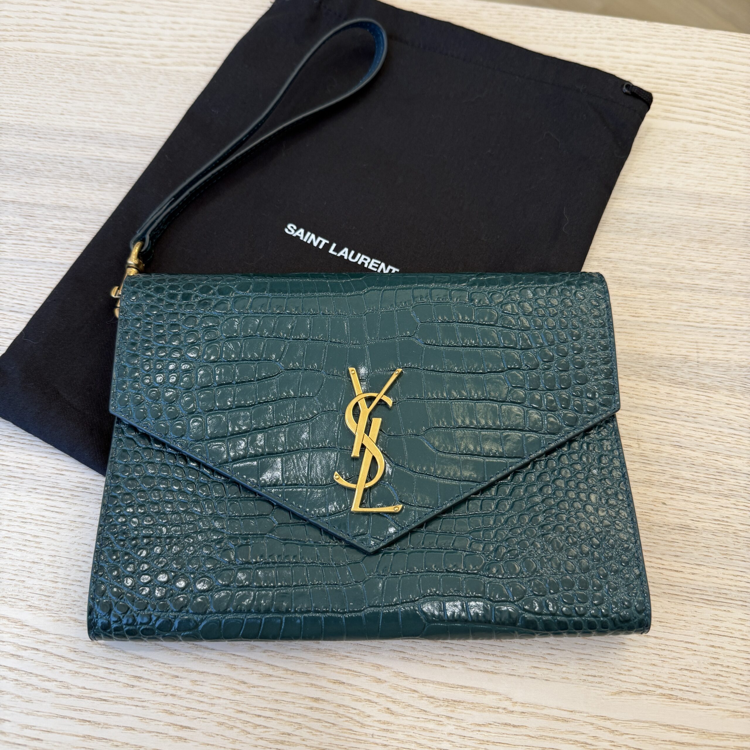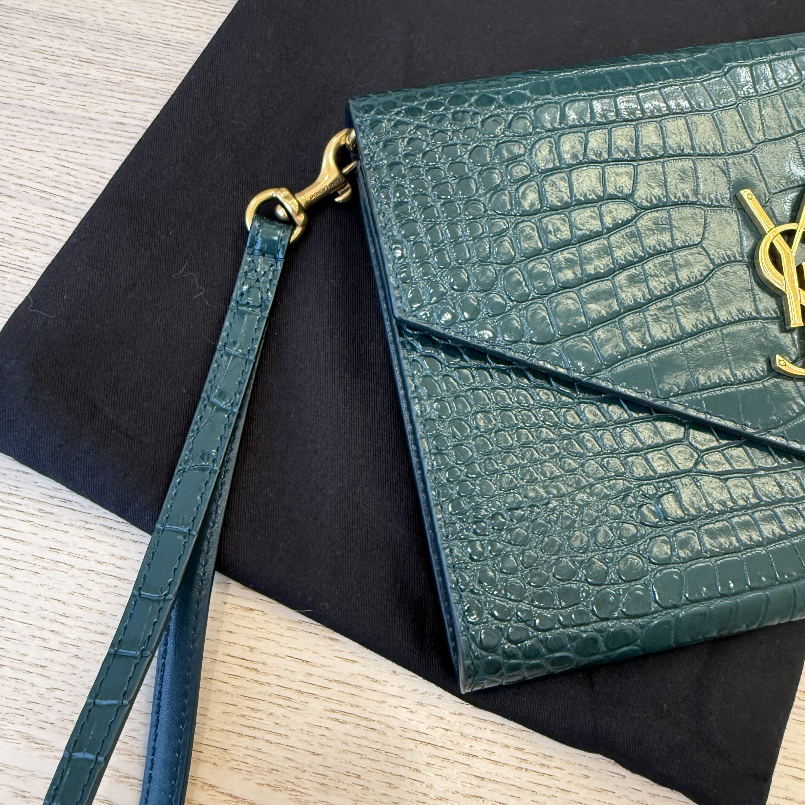 rdcdn Louis Vuitton Calfskin Crocodile Embossed Monogram Cassandre Flap Pouch Foliage Green