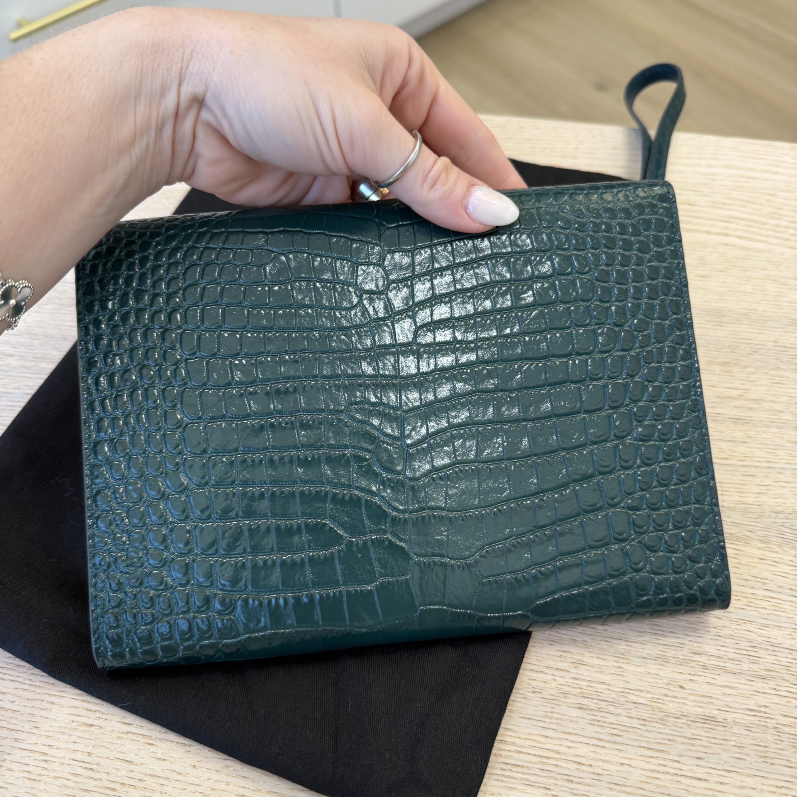 Louis Vuitton Calfskin Crocodile Embossed Monogram Cassandre Flap Pouch Foliage Green
