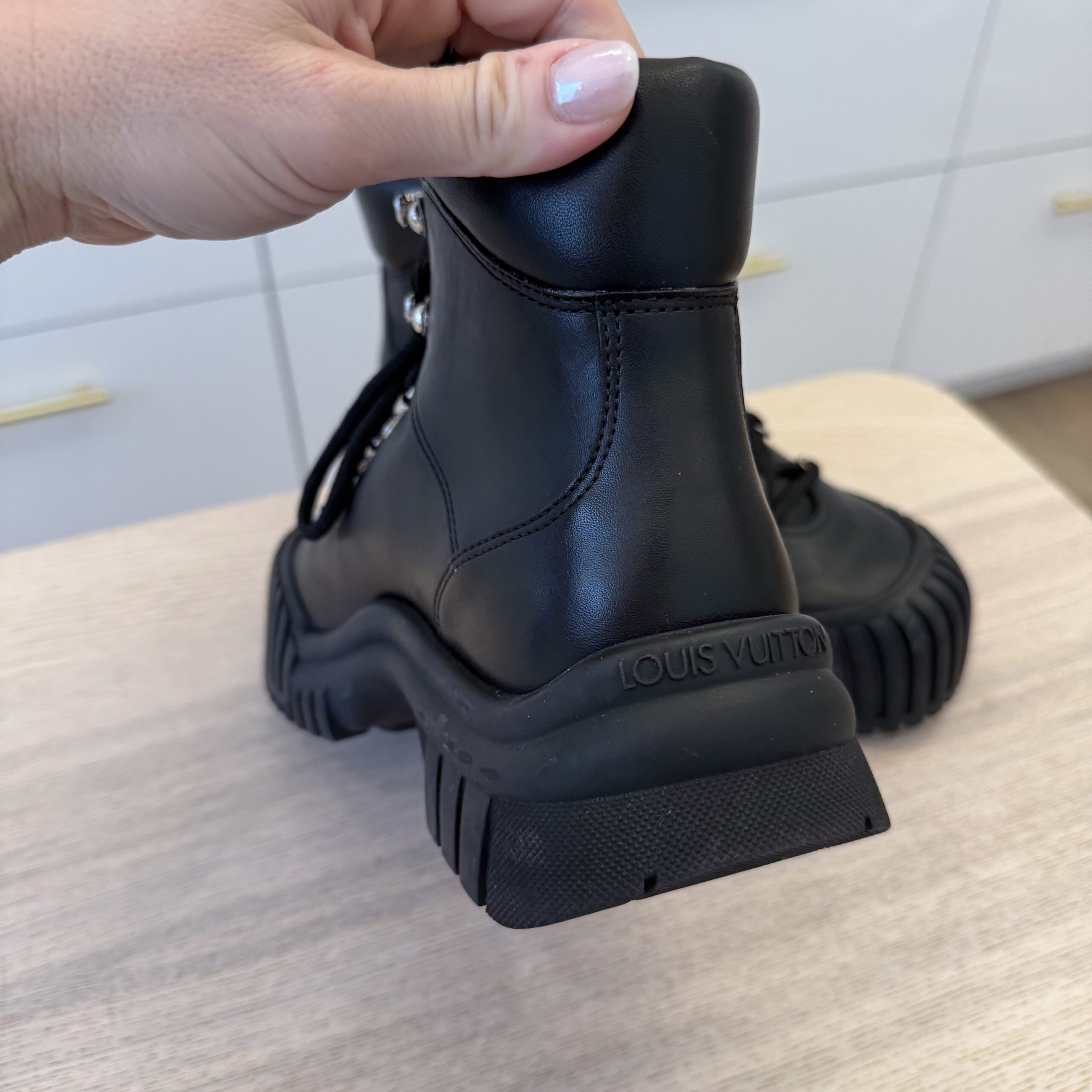 rdcdn Louis Vuitton Calfskin Patent Monogram Ruby Flat Ranger Boots 39 Black