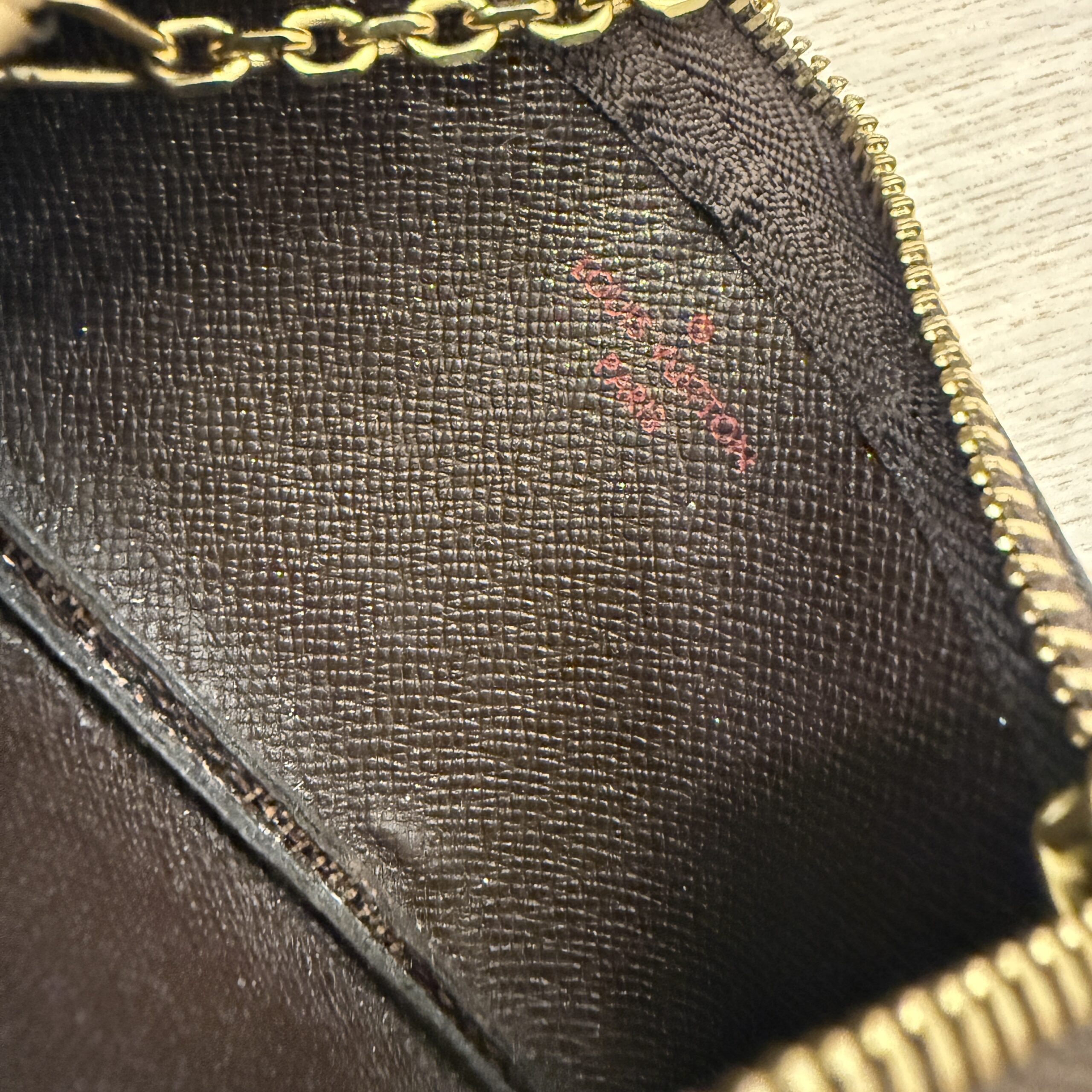 Gently used, light hardware wear, clean inside, zipper runs smooth