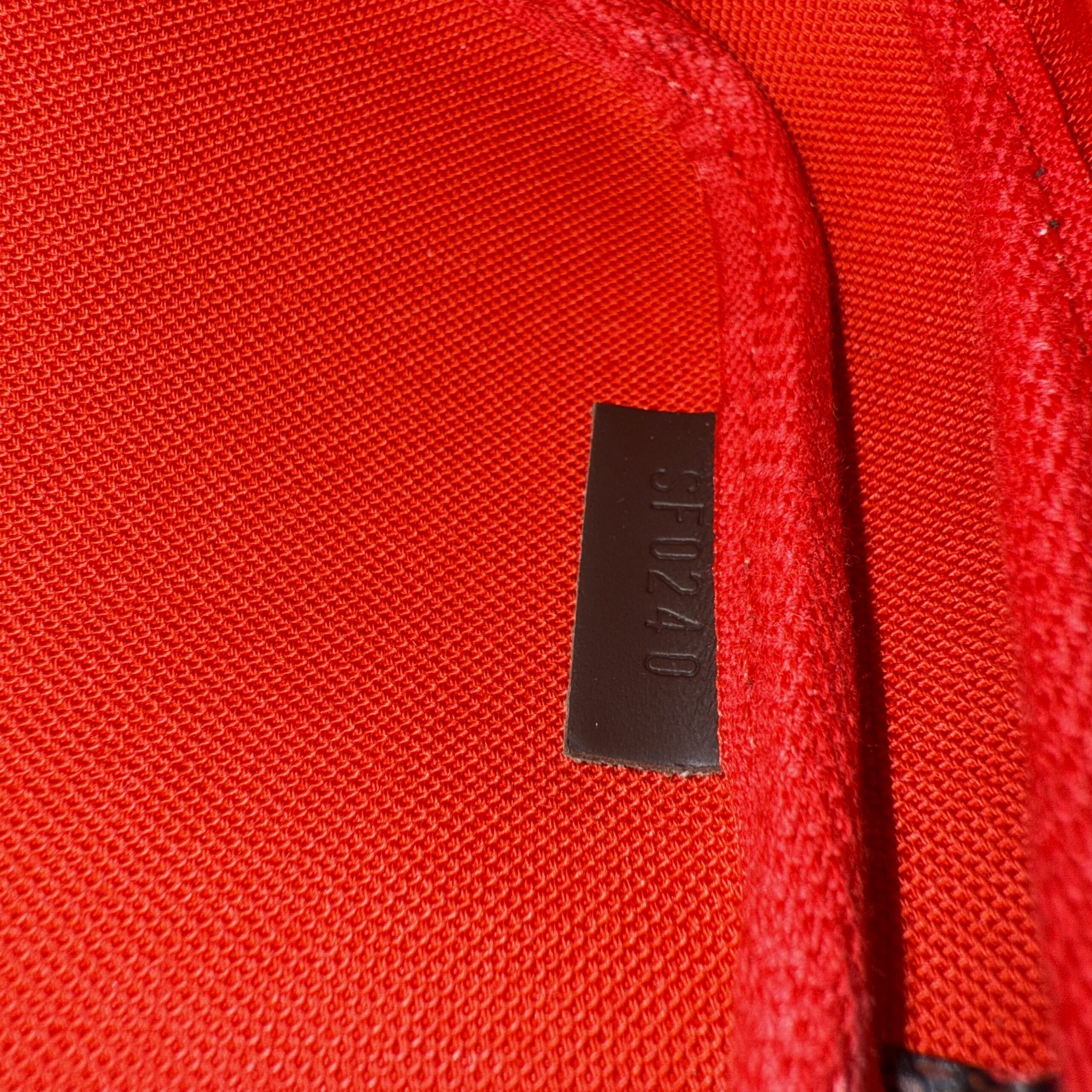 Zipper runs smooth, clean inside, just has one tiny barely visible mark on the side as pictured, shiny gold hardware, used a few times