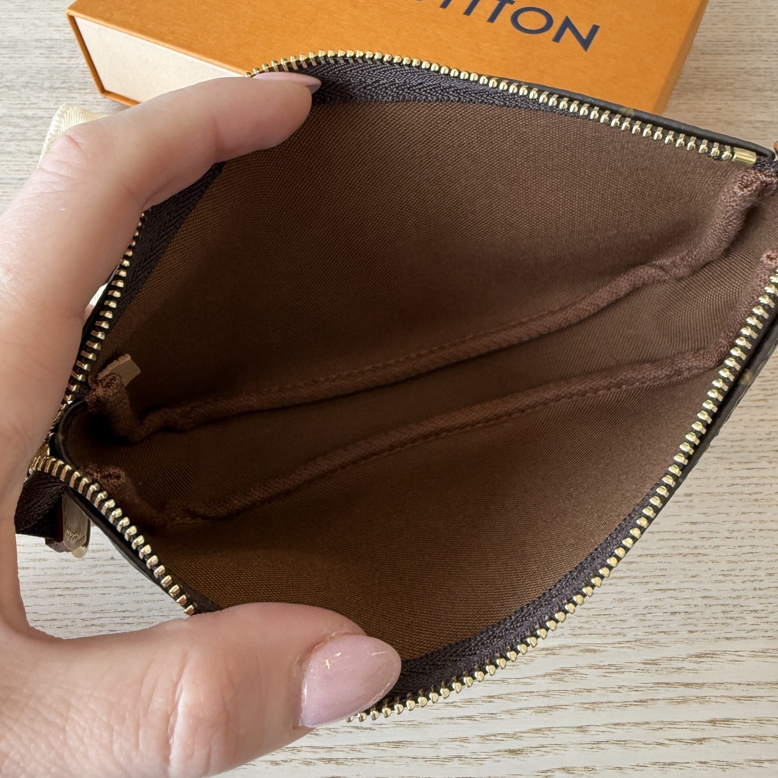 Purchased as a spare part, brand new from the bucket bag so it never came with strap larger than the mini pochette I added a mini pochette to see the size reference