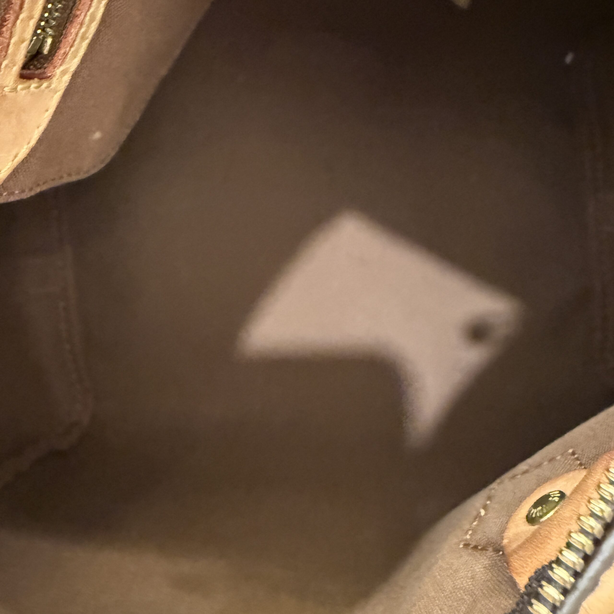 Clean inside, zipper runs smooth, light leather wear, light patina, medium patina, strap wear, watermarks, purchased in 2025, amazing price