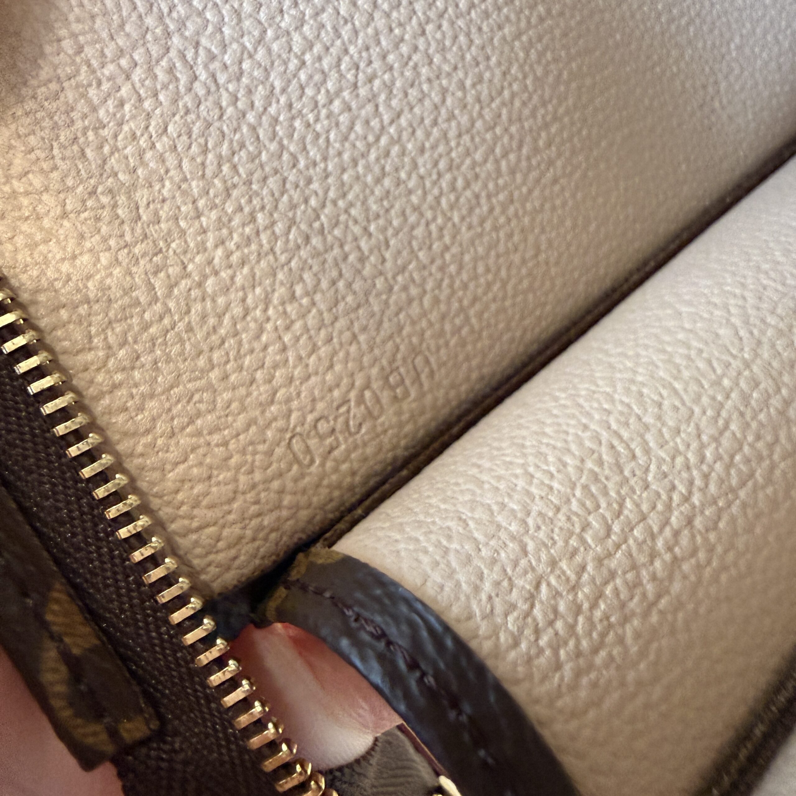 Clean inside, zipper runs smooth, light hardware wear, light patina, light watermarks and leather wear as pictured