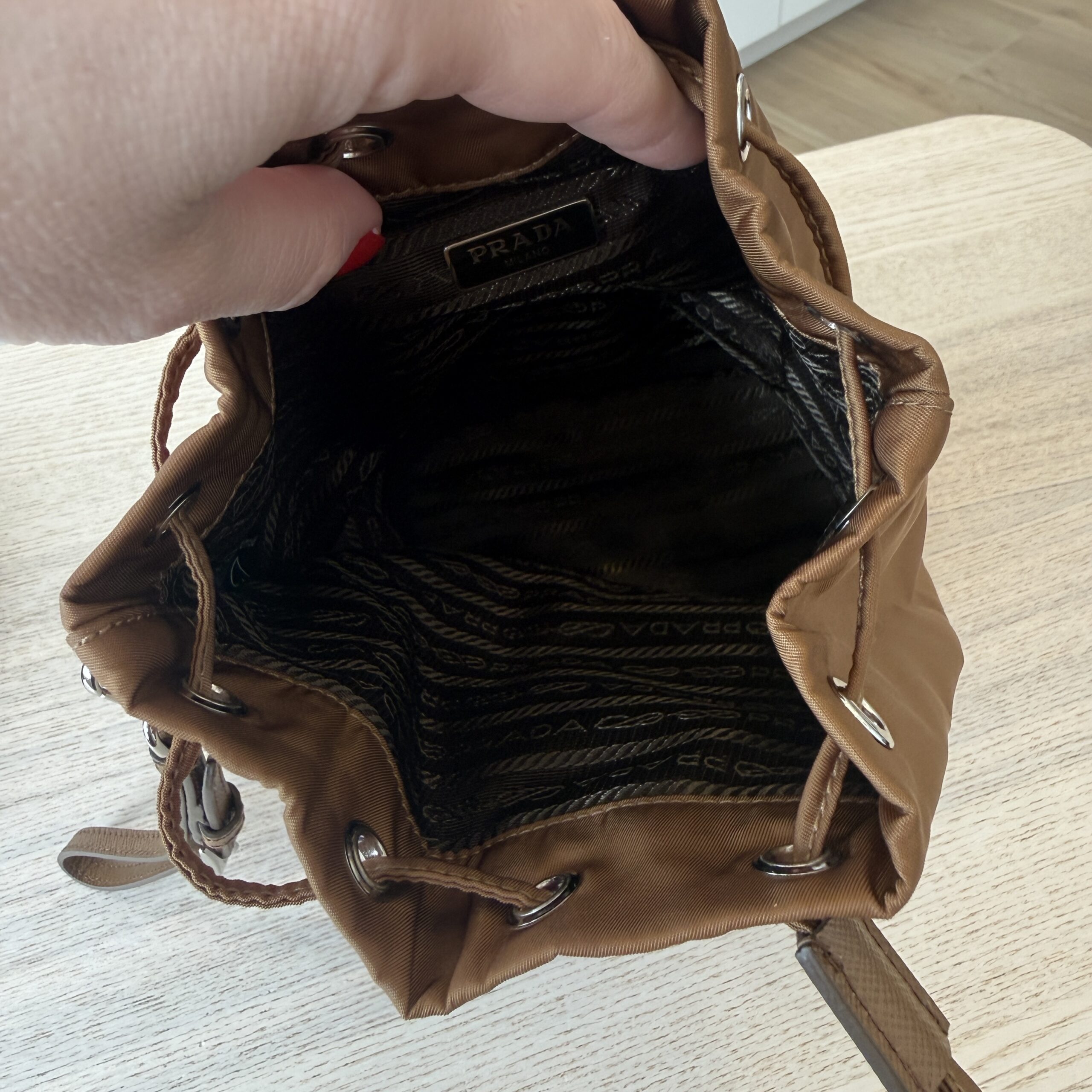 rdcdn Prada Re-Nylon pouch Camel Brown
