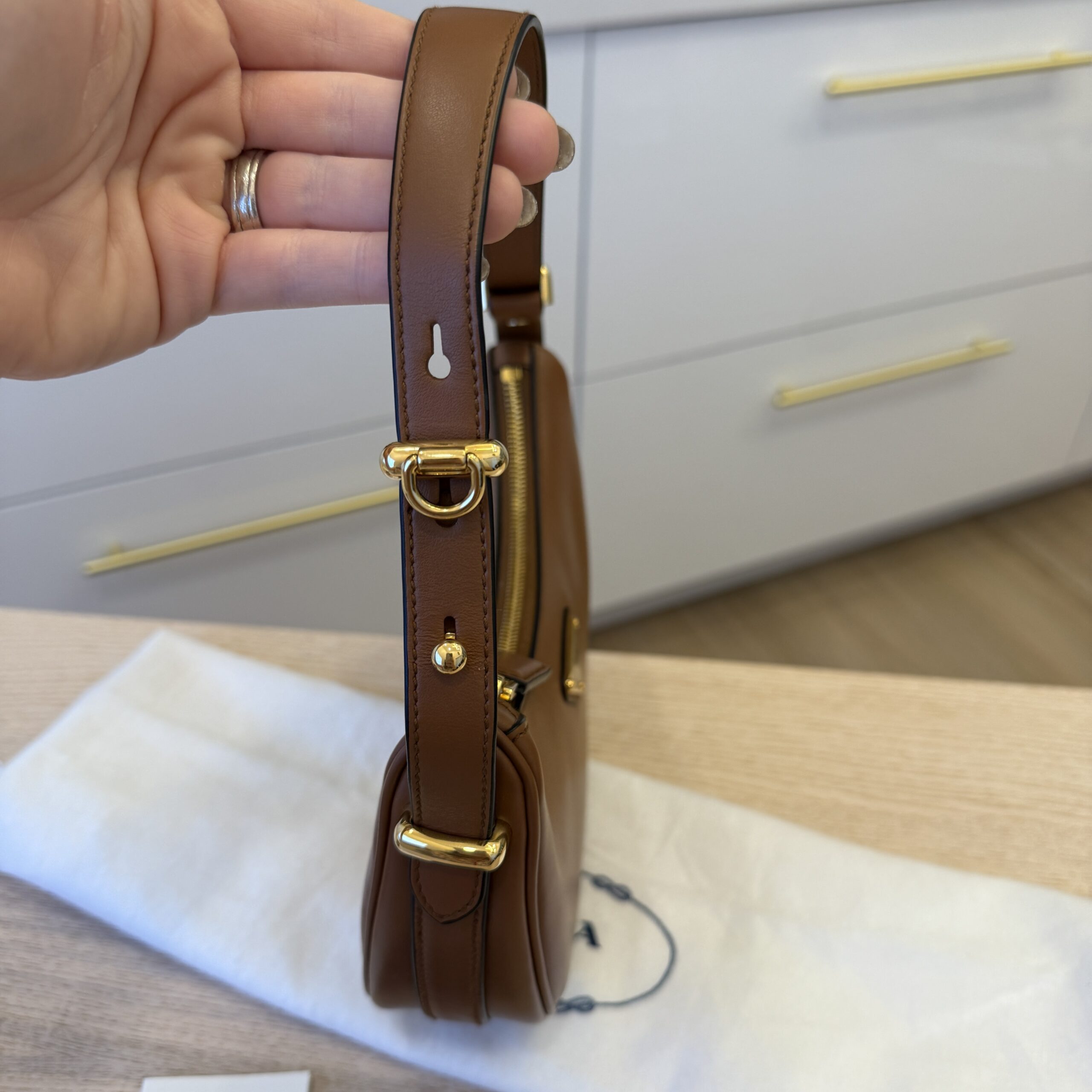 Prada Soft Calfskin Arque Shoulder Bag Cognac