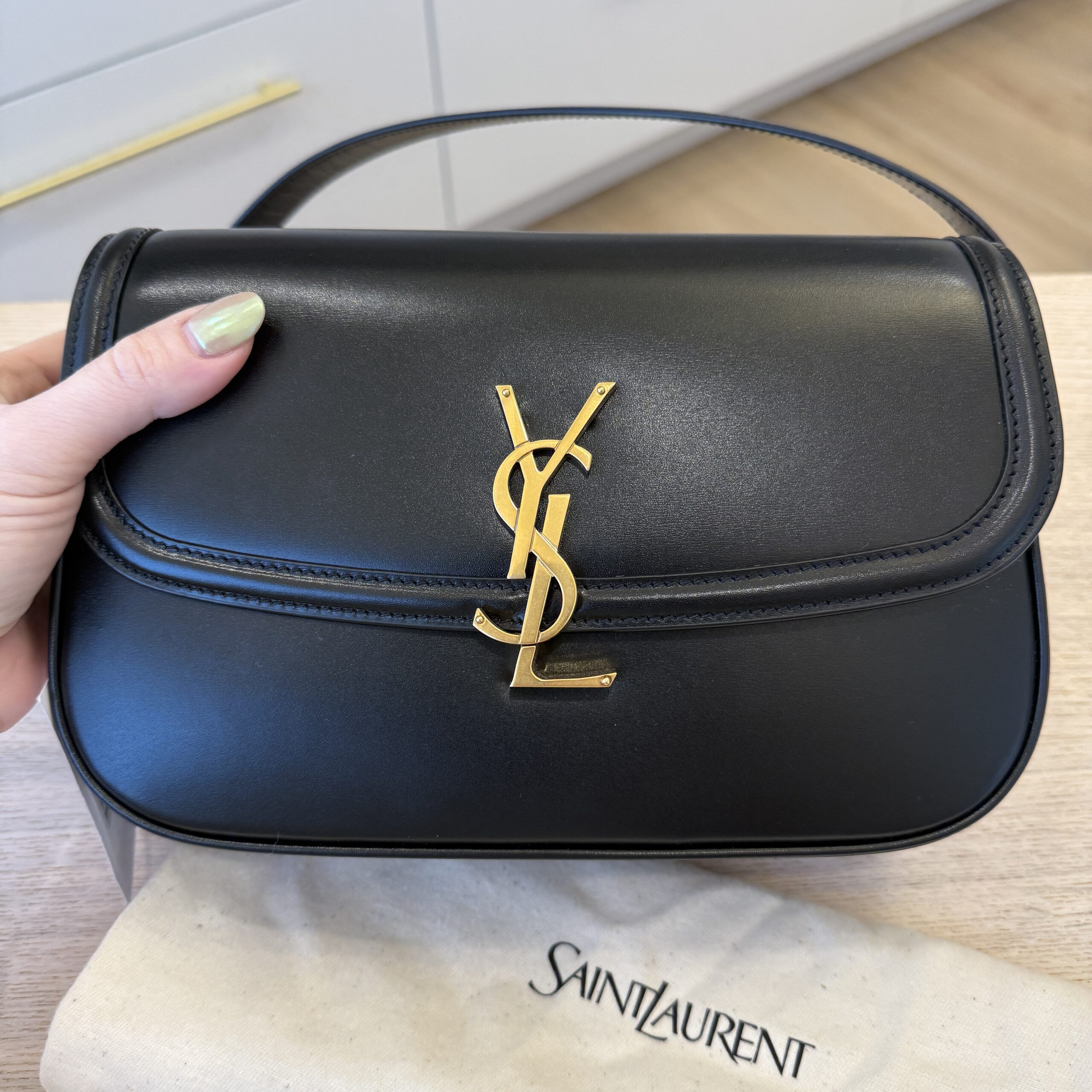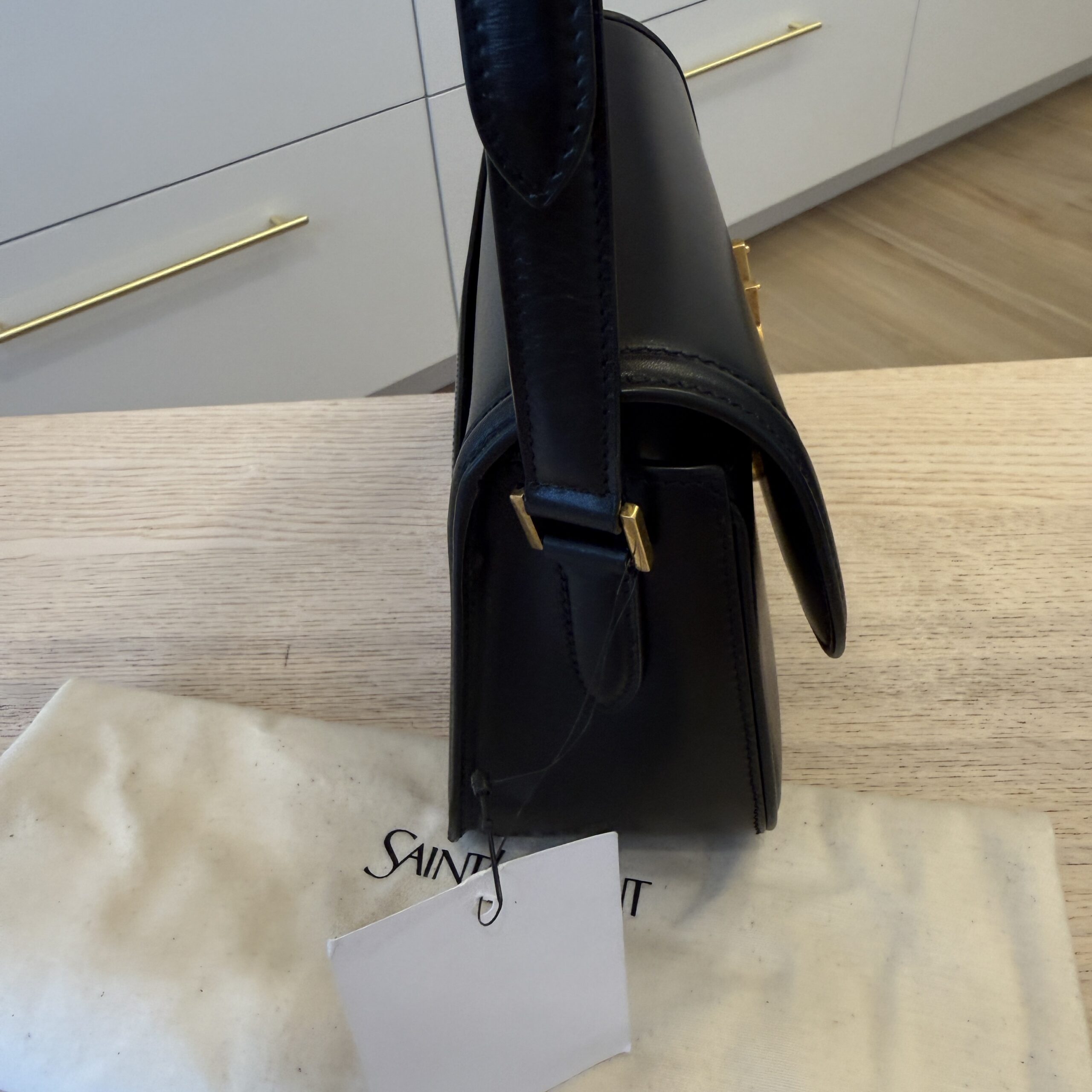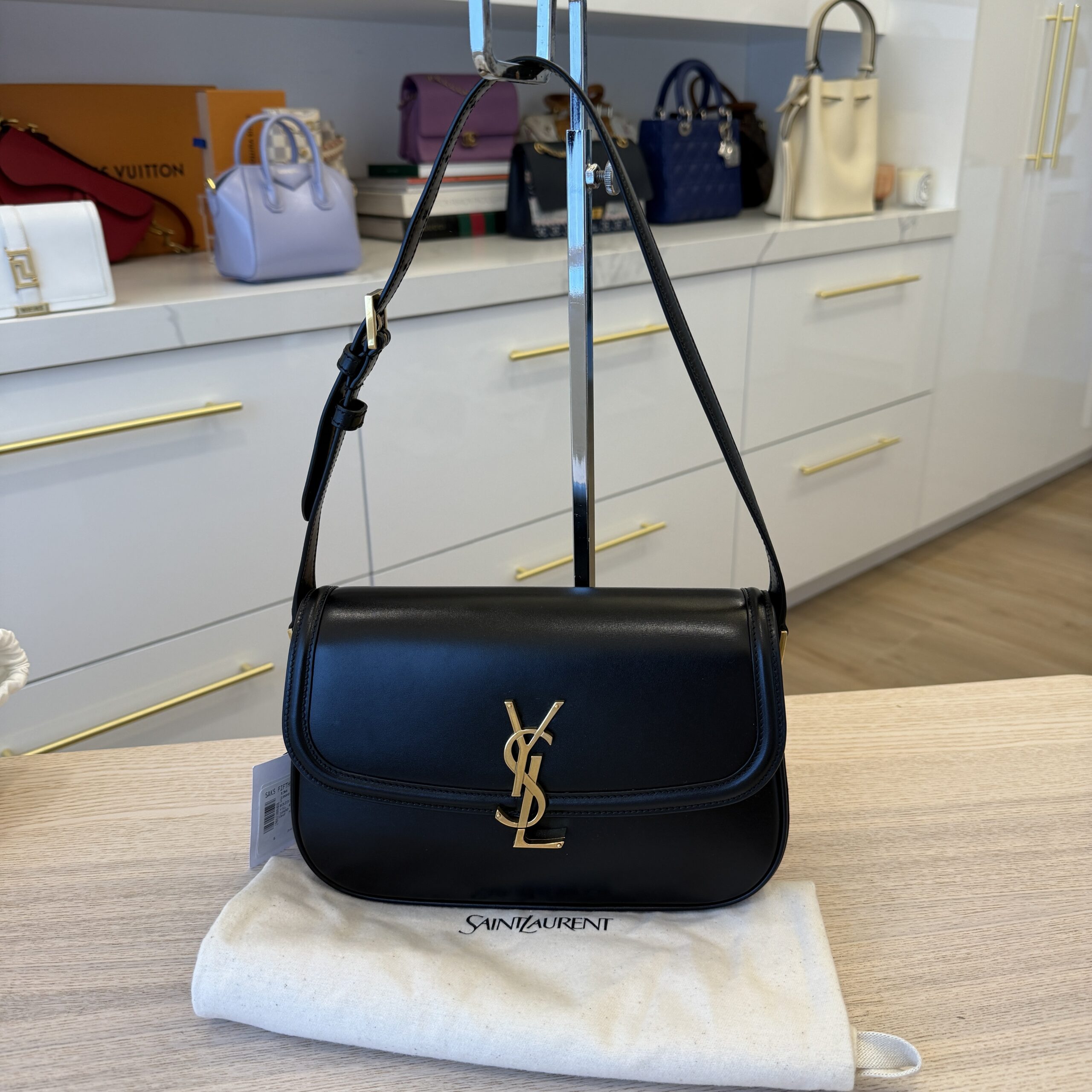 Saint Laurent (YSL) Box Calfskin Monogram Medium Solferino Satchel Black