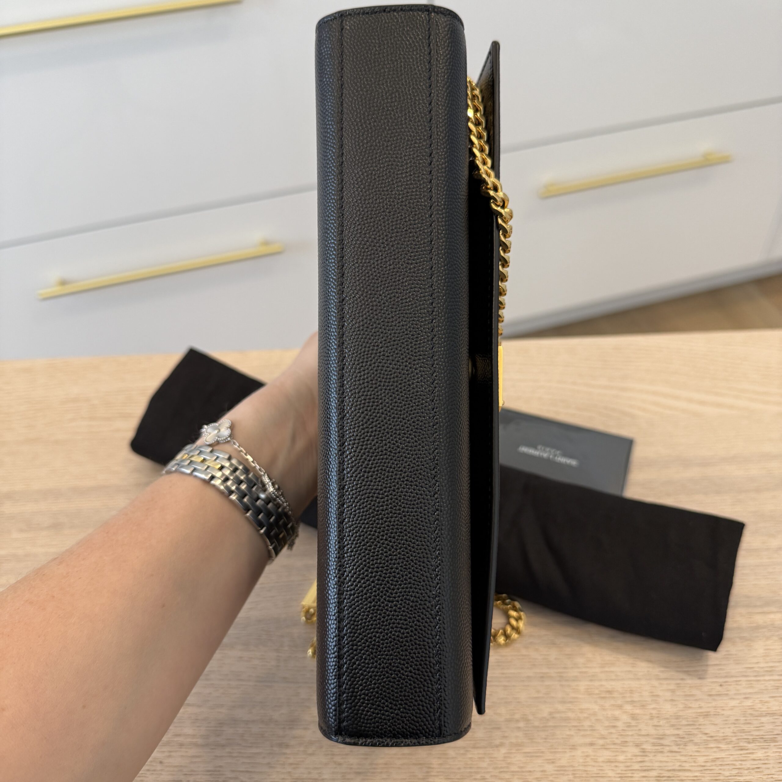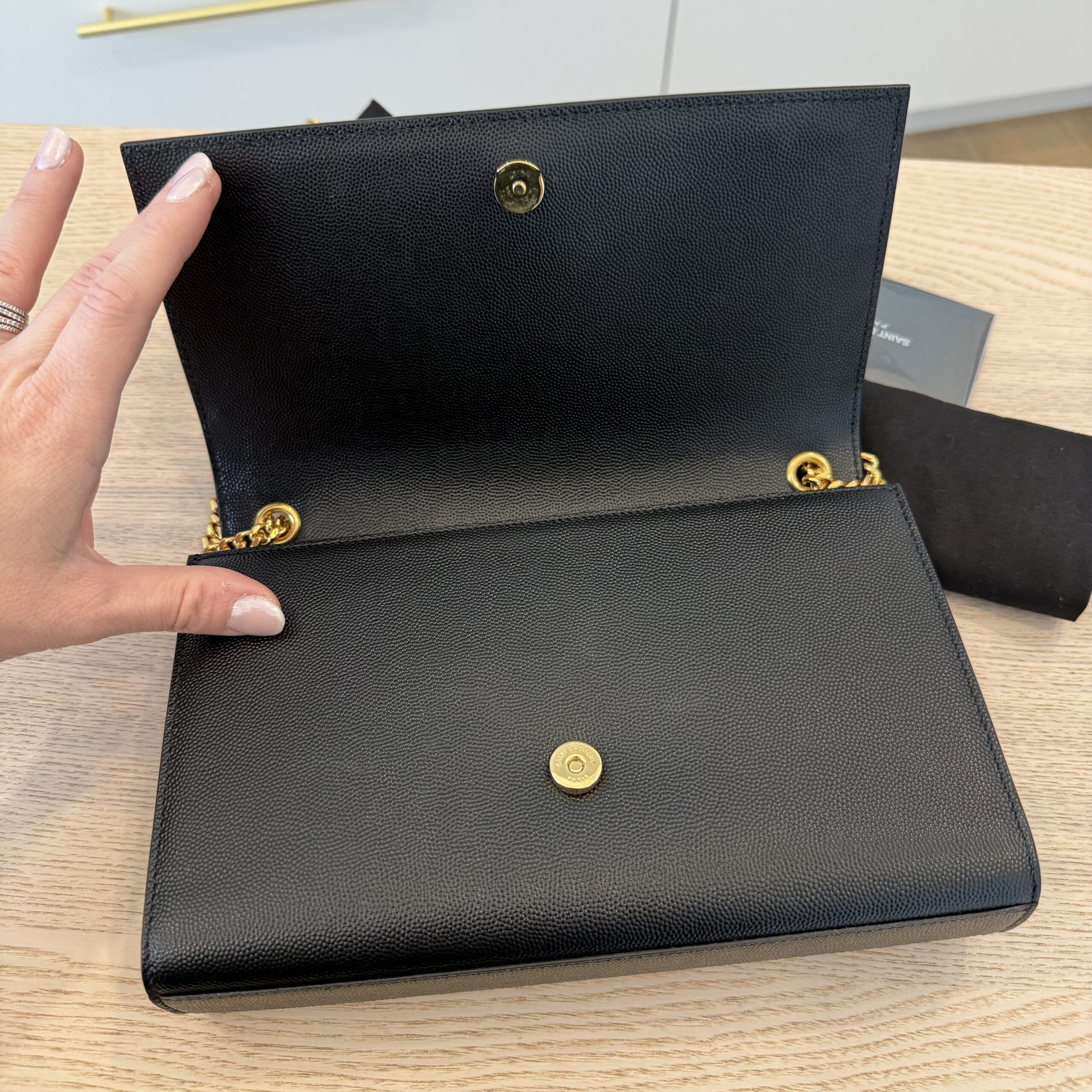 Saint Laurent (YSL) Grain De Poudre Medium Classic Monogram Kate Satchel Black Gold Hardware