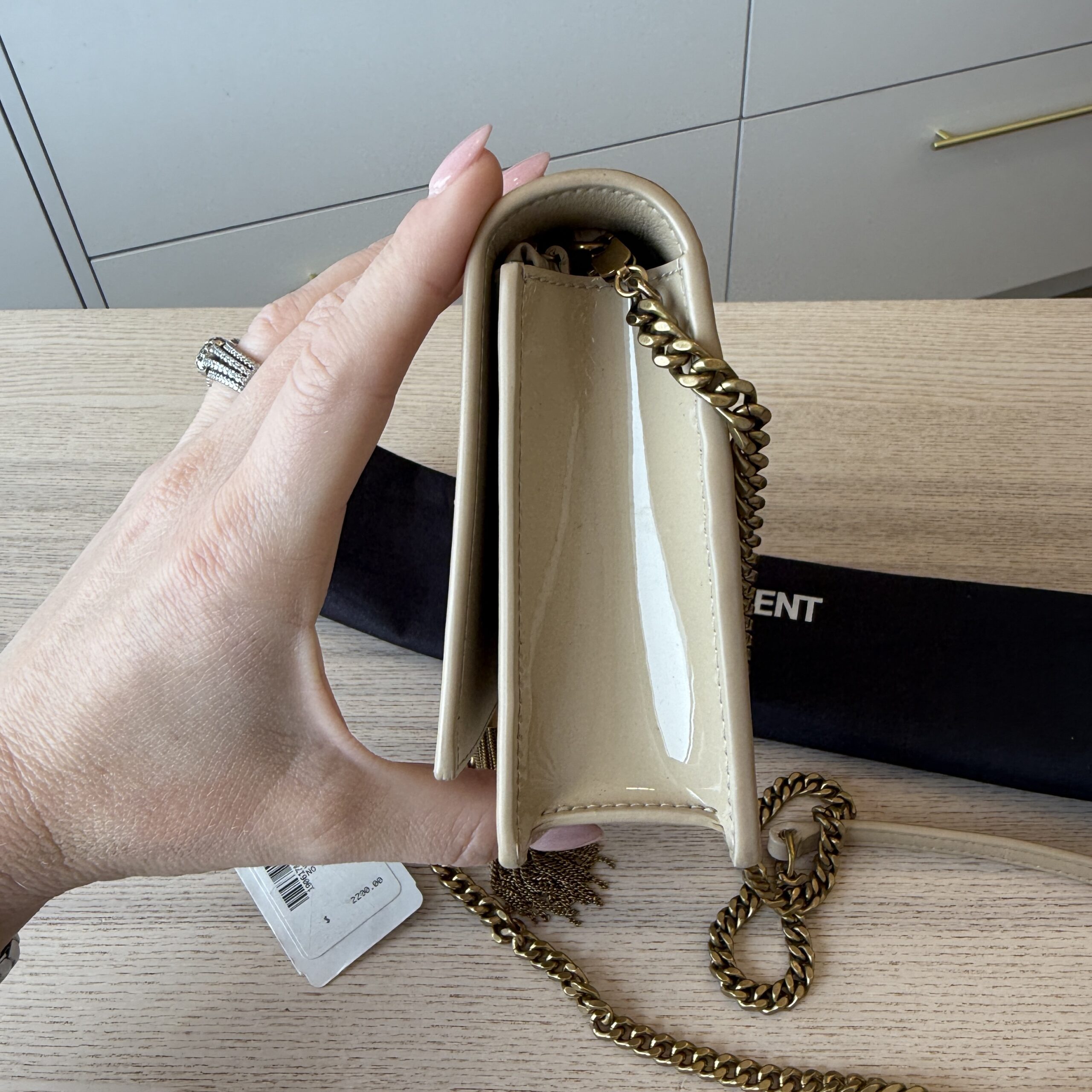 rdcdn SAINT LAURENT (YSL) Kate Small Tassel YSL Wallet on Chain in Patent Leather
