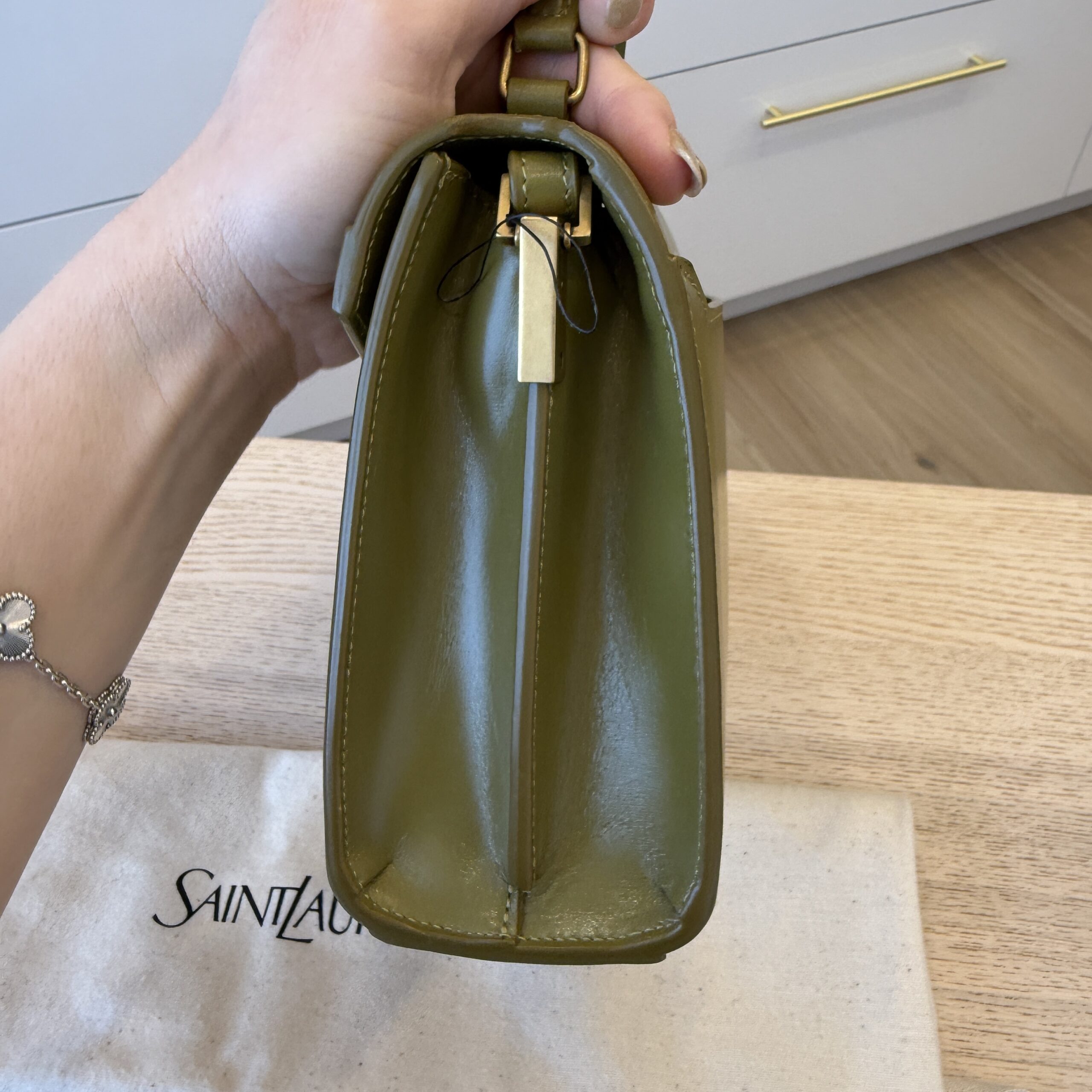 rdcdn Saint Laurent (YSL) Mini Cassandra Leather Top Handle Bag Vert Olive