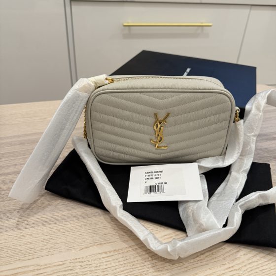 Saint Laurent Calfskin Y Quilted Monogram Loulou Document Holder Dark Grey SHW